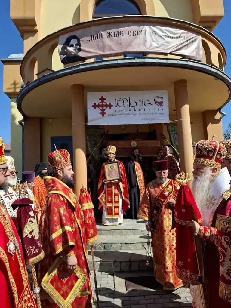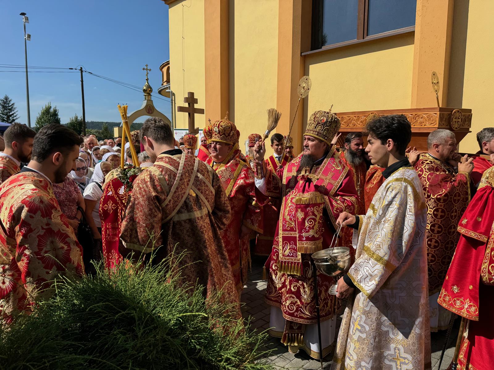 O godzinie 9:45 młodzież, Rada Parafialna, Burmistrz Miasta Gorlice p. Rafał Kukla i Proboszcz Gorlickiej Katedry ks. mitrat Roman Dubec, witają Jego Eminencję, Metropolitę Sawę i przybyłych hierarchów. Przed rozpoczęciem Liturgii Metropolita Sawa dokonuje poświęcenia pamiątkowej tablicy upamiętniającej Jubileusz 100. Lecia autokefalii, jak i rocznice, które wspominamy na terenie naszej diecezji w 2024 roku. Rozpoczyna się Święta Liturgia. Po Ewangelii odczytano przesłanie Św. Soboru Biskupów naszej Cerkwi w związku z Jubileuszem 100. Lecia autokefalii P.A.K.P. Uroczystą Świętą Liturgię upiększa swym śpiewem chór Katedry Świętej Trójcy w p/d lektora Anatola Hethy.
