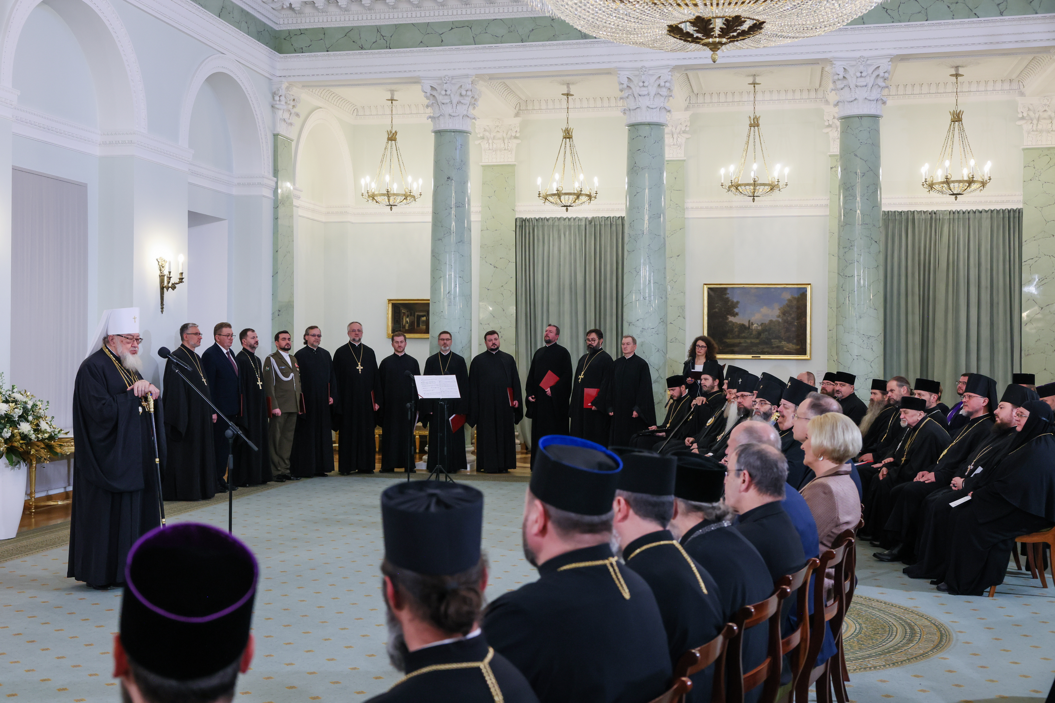 W swoim wystąpieniu Prezydent przypomniał, że sto lat temu kwestia autokefalii Polskiego Autokefalicznego Kościoła Prawosławnego nie była sprawą nową, bo narodziła się jako idea po spotkaniu duchownych w Pińsku w 1791 roku. – Wtedy powstał pierwszy projekt autokefalii, noszono się z zamiarem jej uzyskania, ale wojna, która wkrótce się rozpoczęła, zniweczyła te zamiary. Po odzyskaniu przez Polskę niepodległości w 1918 roku te starania zostały ponowione i zakończyły się uzyskaniem od patriarchatu konstantynopolskiego autokefalii dla Polskiego Autokefalicznego Kościoła Prawosławnego 13 listopada 1924 roku – wskazał. Dziękuję za to, co Polski Autokefaliczny Kościół Prawosławny wniósł do Rzeczypospolitej, do historii Rzeczypospolitej, również w znaczeniu wychowawczym, również w znaczeniu obrońców Rzeczypospolitej, których groby znaczą tak wiele miejsc w Polsce i na świecie. Dziękuję za budowanie postaw, współbudowanie Rzeczypospolitej i proszę o jeszcze – powiedział Prezydent.