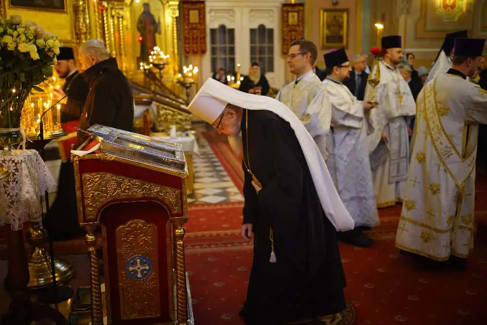 Świętej Liturgii w katedrze metropolitalnej przewodniczył Jego Ekscelencja arcybiskup bielski Grzegorz w asyście biskupa hajnowskiego Pawła, biskupa siemiatyckiego Warsonofiusza oraz przybyłego duchowieństwa. Podczas św. Liturgii wznoszono modlitwy w intencji zdrowia Jego Eminencji, pokoju na świecie, a także modlono się o spokój duszy zmarłego w godzinach porannych zwierzchnika Cerkwi prawosławnej w Albanii, błogosławionej pamięci arcybiskupa Anastazego.