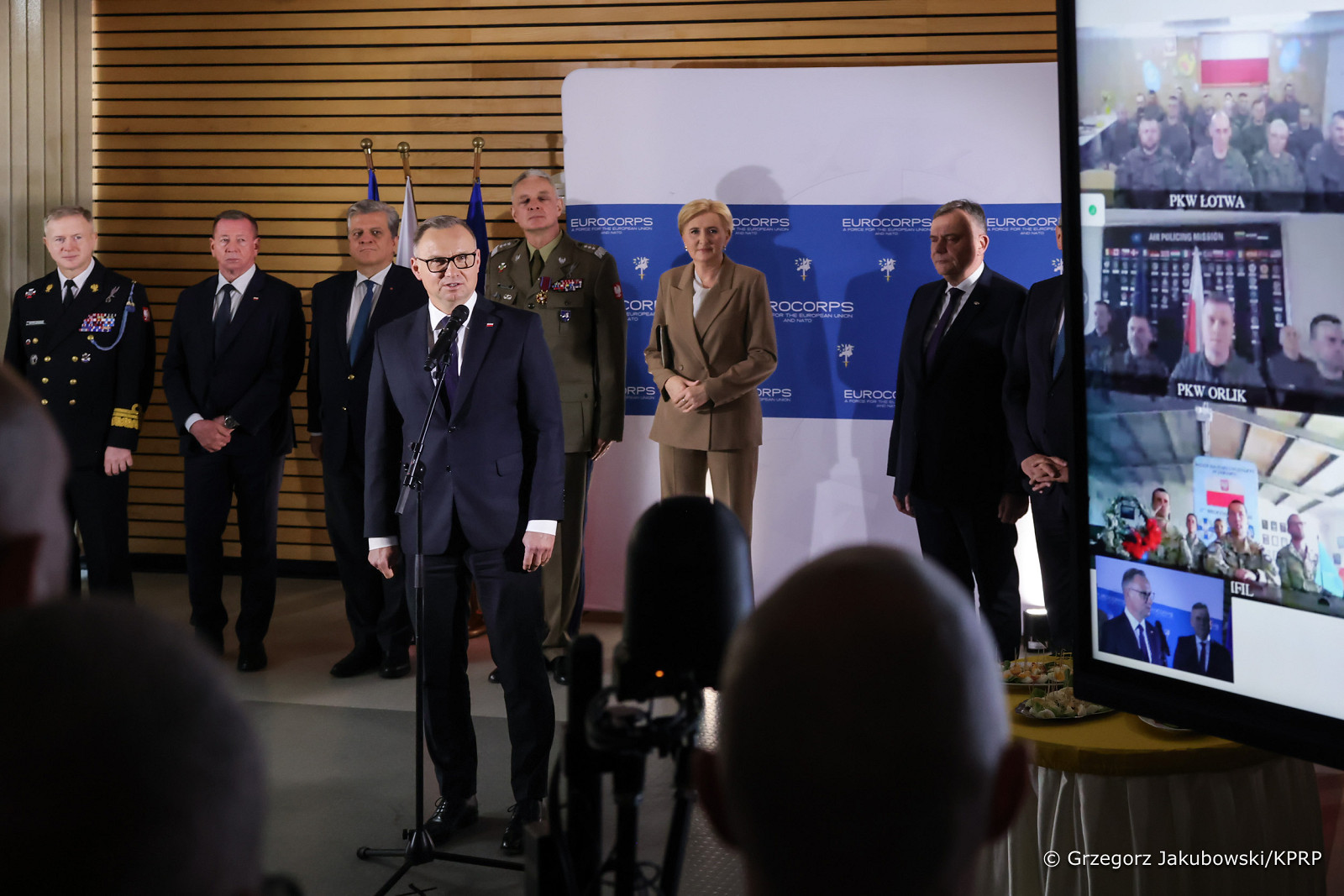 Następnie podczas spotkania Wielkanocnego w siedzibie Eurokorpusu miało miejsce połączenie z polskimi kontyngentami wojskowymi z całego świata. Prezydent Andrzej Duda złożył żołnierzom życzenia z okazji zbliżających się Świąt Wielkanocnych i podkreślił, że „w wojsku służą nie tylko żołnierze, ale też ich najbliżsi”.