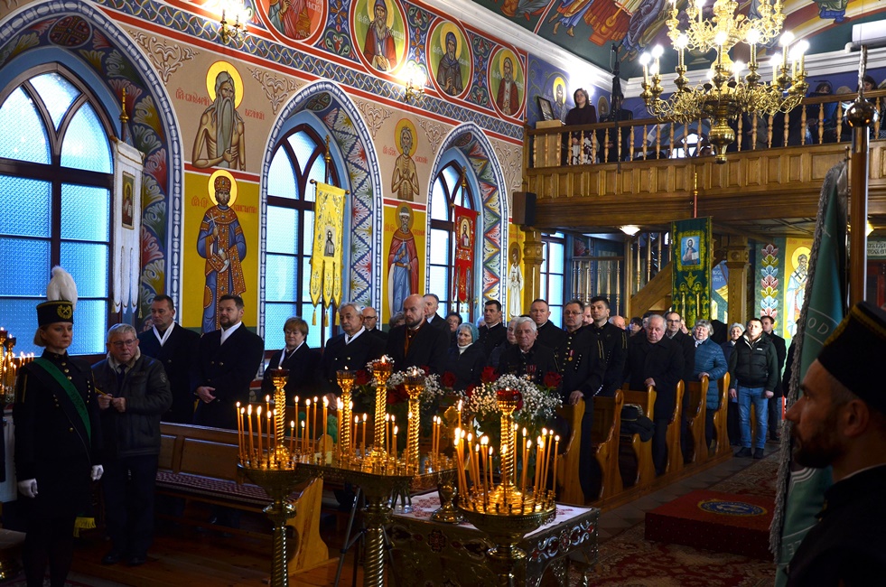 To jednak nie był koniec obchodów górniczego święta, ponieważ już 4 grudnia br. rozpoczęto Barbórkę od tradycyjnych pobudek górniczych w miastach Zagłębia Miedziowego. Następnie Brać Górnicza wzięła udział w uroczystościach nabożeństw Świętej Liturgii w Sanktuarium św. Maksymiliana w Lubinie, a także w Parafii Prawosławnej Świętej Trójcy w Lubinie, w których zanoszono modlitwy za cały Stan Górniczy do Świętej Barbary, a w prawosławnej Cerkwi ponadto do Przenajświętszej Bogarodzicy z okazji przypadającego w tym dniu Święta Ofiarowania do Świątyni Przenajświętszej Bogarodzicy, zawierzając Matce Bożej Brać Górniczą wraz z ich Rodzinami. Tegorocznej Świętej Boskiej Liturgii w Parafii Prawosławnej Świętej Trójcy w Lubinie przewodniczył Jego Ekscelencja, Najprzewielebniejszy Jerzy, Ordynariusz Diecezji Wrocławskiej i Szczecińskiej, Prawosławny Ordynariusz Wojskowy w asyście Prawosławnego Kapelana Górniczego, Generalnego Honorowego Dyrektora Górniczego, Ks. prot. Bogdana Repeły i Ks. Ihumena Spirydona (Kuziaka). U progu świątyni Ekscelencję powitał Komitet Górniczy w osobach pana Mariana Szkurata, Adama Herbuta i Piotra Fesza. Górnicy podziękowali Władyce za obecność w tegorocznym święcie, duchową opiekę, nieustanna modlitwę i Arcypasterskie Błogosławieństwo dla Stanu Górniczego. Następnie słowa powitania i podziękowania za przewodniczenie w świętej Boskiej Liturgii oraz modlitwę za cały Stan Górniczy skierował do Ekscelencji Kapelan Dolnośląskiej Prawosławnej Braci Górniczej, proboszcz lubińskiej parafii ks. prot. Bogdan Repeła. Powitał on także wszystkich zebranych na tegorocznym barbórkowym święcie, dostojnych Gości w szczególności: Dyrektora Naczelnego KGHM ds. Górnictwa Pana Krzysztofa Porębskiego, Dyrektor ds. Pracowniczych KGHM O/ZG Lubin – Panią Anettę Borkowską, Dyrektora ds. Utrzymania Ruchu KGHM O/ZG Rudna – Pana Tomasza Gromka, Dyrektora ds. Produkcji KGHM O/ZWR – Pan Rafała Pępkowskiego, Dyrektora Naczelnego Jednostki Ratownictwa Górniczo-Hutniczego KGHM Polska Miedź S.A Pana Marcina Górskiego, Dyrektora Naczelnego Oddziału Huty Miedzi „Legnica” – Pana Mariusza Rzepczyńskiego, Dyrektora ds. Pracowniczych pana Grzegorza Styrkowca, Dyrektora Naczelnego Oddziału Huty Miedzi „Głogów” – pana Jarosława Siedleckiego, Dyrektora ds. Pracowniczych, pana Rafała Kosmalskiego, Pełnomocnika Zarządu KGHM ds. współpracy z samorządami – Pana Teodora Haburę, Wójta Gminy Lubin, Pana Norberta Grabowskiego, Wójta Gminy Rudna, Pana Zbigniewa Grabowskiego, Komendanta Komendy Powiatowej Policji w Lubinie, Pana inspektora Waldemara Cichockiego, Zastępcy Komendanta Powiatowego Policji w Lubinie Młodszego Inspektora pana Mirosława Juzaka, Prezesa Zarządu Oddziału Powiatowego Ochotniczej Straży Pożarnej w Polkowicach, pana Krystiana Malinowskiego wraz z małżonką, Poczet Sztandarowy Oddziału Hydrotechnicznego KGHM Polska Miedź S.A, Poczet sztandarowy Centralnego Oddział Przetwarzania Informacji KGHM Polska Miedź S.A Po komendzie wprowadzenia Pocztów Sztandarowych ks. prot. Bogdan Repeła poprosił Jego Ekscelencję Arcybiskupa Jerzego o przewodniczenie nabożeństwu. Władyka w homilii skierowanej do wiernych i Braci Górniczej przybliżył szczególny wymiar życia liturgicznego, tak bardzo potrzebny dla każdego chrześcijanina, na istotę życia duchowego, obecności w Świętej Boskiej Liturgii. Przybliżając święto Wprowadzenia do Świątyni Przenajświętszej Bogarodzicy podkreślił jego ponadczasowy charakter, ukazując na Rodziców Matki Bożej, Joachima i Annę, Ich oddanie i zaufanie Bogu, wiarę, pokorę i mądrość. Łaskę jaką otrzymali poprzez trwanie w ufności wobec Stwórcy oraz pragnienie wypełniania bożych przykazań w swoim życiu, a właściwie pełne oddanie się woli Bożej. Podkreślił jak ważny jest dla nas i całego kraju trud codziennej pracy Górników, prosił, aby nie zapominali o codziennej modlitwie i zaufaniu do swojej niebiańskiej Patronki Świętej Barbary. Podkreślił jak ważną cechą każdego górnika jest wiara, szczególnie w obliczu potęgi żywiołów z którymi spotykają się na co dzień w wykonywanych obowiązkach. Jak budujące są słowa przywitania a zarazem modlitwy górników „Szczęść Boże” rozpoczynających dzień pracy, aby z Bożą pomocą zakończyli ją zawsze szczęśliwie wracając pełni sił do swych rodzin.