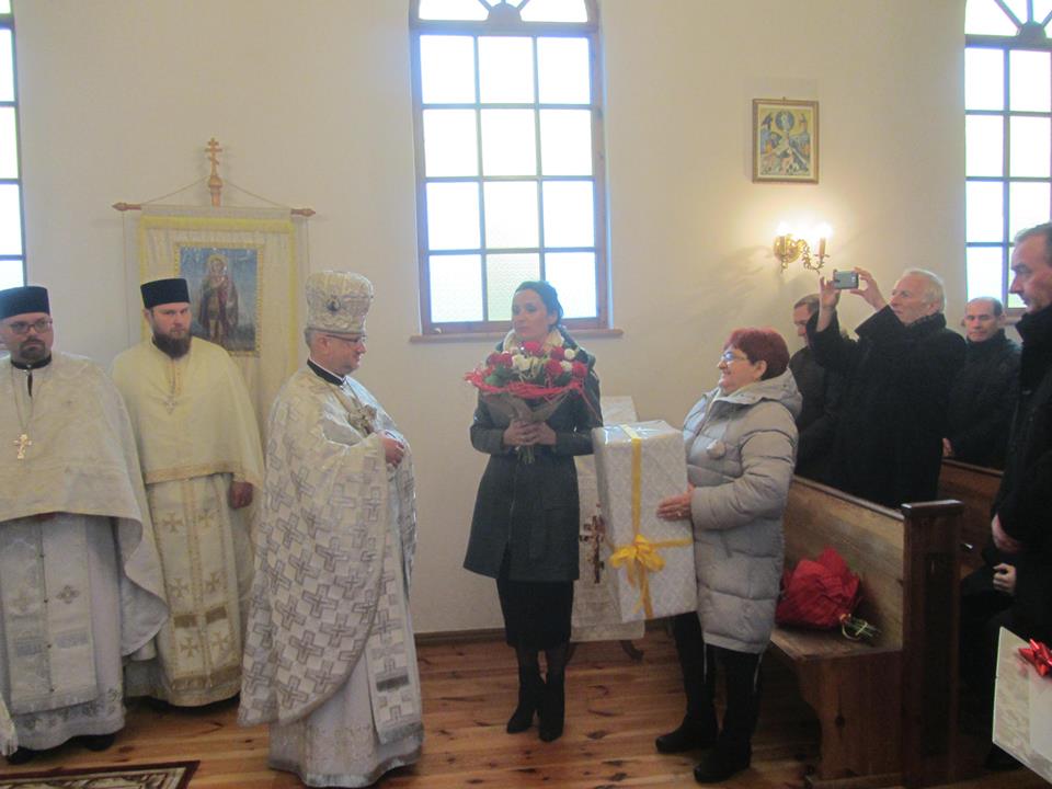 Na zakończenie ks. Stanisław Strach w imieniu zebranego duchowieństwa podziękował ks. Dariuszowi za zaproszenie oraz 30 lat posługi kapłańskiej. Następnie kwiaty oraz prezent wręczyła wójt gminy Nowa Sól pani Izabela Bojko, życząc łaski Bożej oraz dalszych sukcesów w pracy duszpasterskiej. Z życzeniami zwrócił się także zastępca burmistrza Szprotawy pan Paweł Chylak. Również parafianie lipińskiej i kożuchowskiej cerkwi wręczyli o. Dariuszowi kwiaty i prezent, szczerze dziękując za wieloletni trud, wyrozumiałość i poświęcenie jakimi cechował się w swojej posłudze. Od zebranego duchowieństwa ks. Ciołka otrzymał wyszywany, biały epitrachelion z życzeniami wytrwałości w trudach kapłańskiej służby oraz pióro mające pomóc w jego dalszej karierze naukowej. Całość uroczystości zwieńczyło gromkie Mnohaja lita dla wszystkich zebranych.
