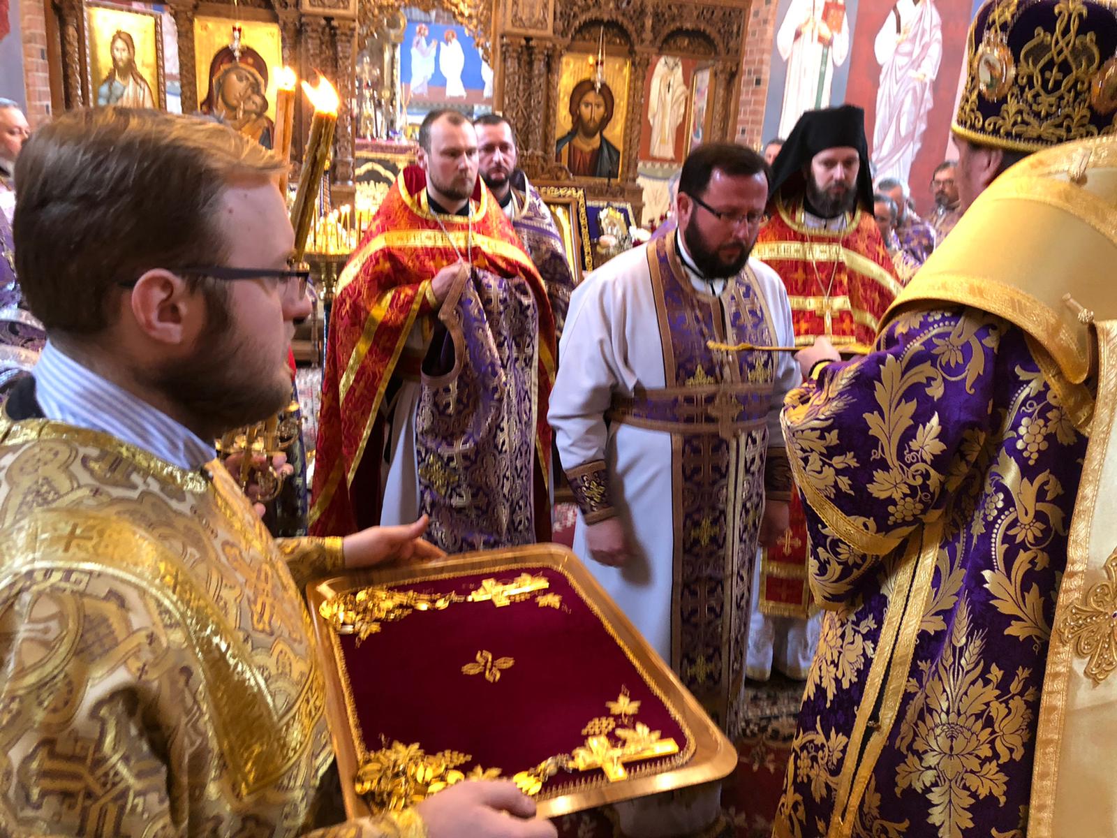 Podczas Boskiej Liturgii Władyka z okazji nadchodzącego święta Paschy nagrodził ks. Bogdana Repełę prawem noszenia palicy, ks. hieromnicha Spirydona podniósł do godności igumena, ks. Igora Haburę do godności protoiereja oraz nagrodził prawem noszenia złotego krzyża ks. Tomasza Mędryckiego i ks. Gienadiusza Sahajdaka.