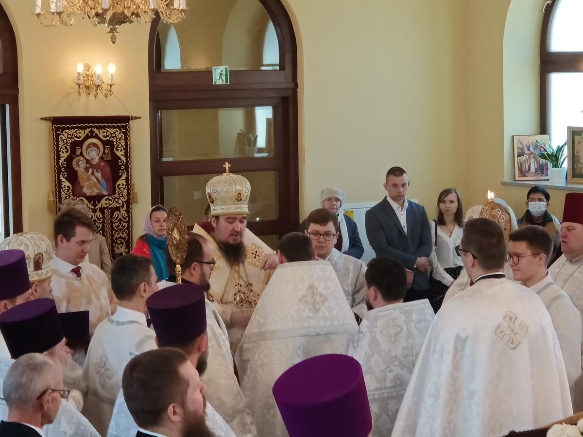 W wigilię święta zostało odprawione uroczyste nabożeństwo Wielkiej Wieczerni i Jutrzni w szczególnym okresie Światłego Tygodnia, po Passze Chrystusowej.