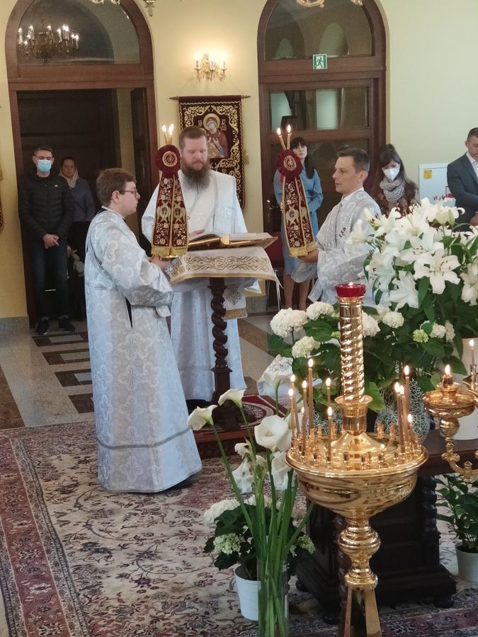 W tym roku na dzień 9 maja przypadła pierwsza Niedziela po Wielkanocy - Antypascha - wówczas Cerkiew Prawosławna wspomina modlitewnie świętego apostoła Tomasza. Tego dnia w Prawosławnej Parafii Wojskowej w Warszawie Boską Liturgię sprawował JE Abp Jerzy.