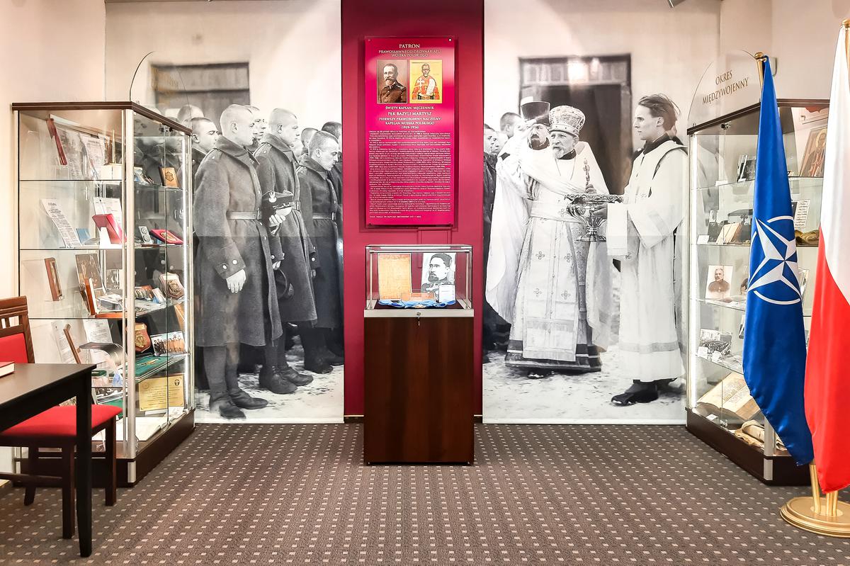 Wszystkie zgromadzone przedmioty, szaty, materiały i fotografie opowiadają o historii prawosławnego duszpasterstwa w Wojsku Polskim. Wśród najcenniejszych eksponatów zebranych w Sali Tradycji znajdują się m.in. rekwizyty i utensylia kapelanów prawosławnych, pochodzących z okresu II Wojny Światowej.