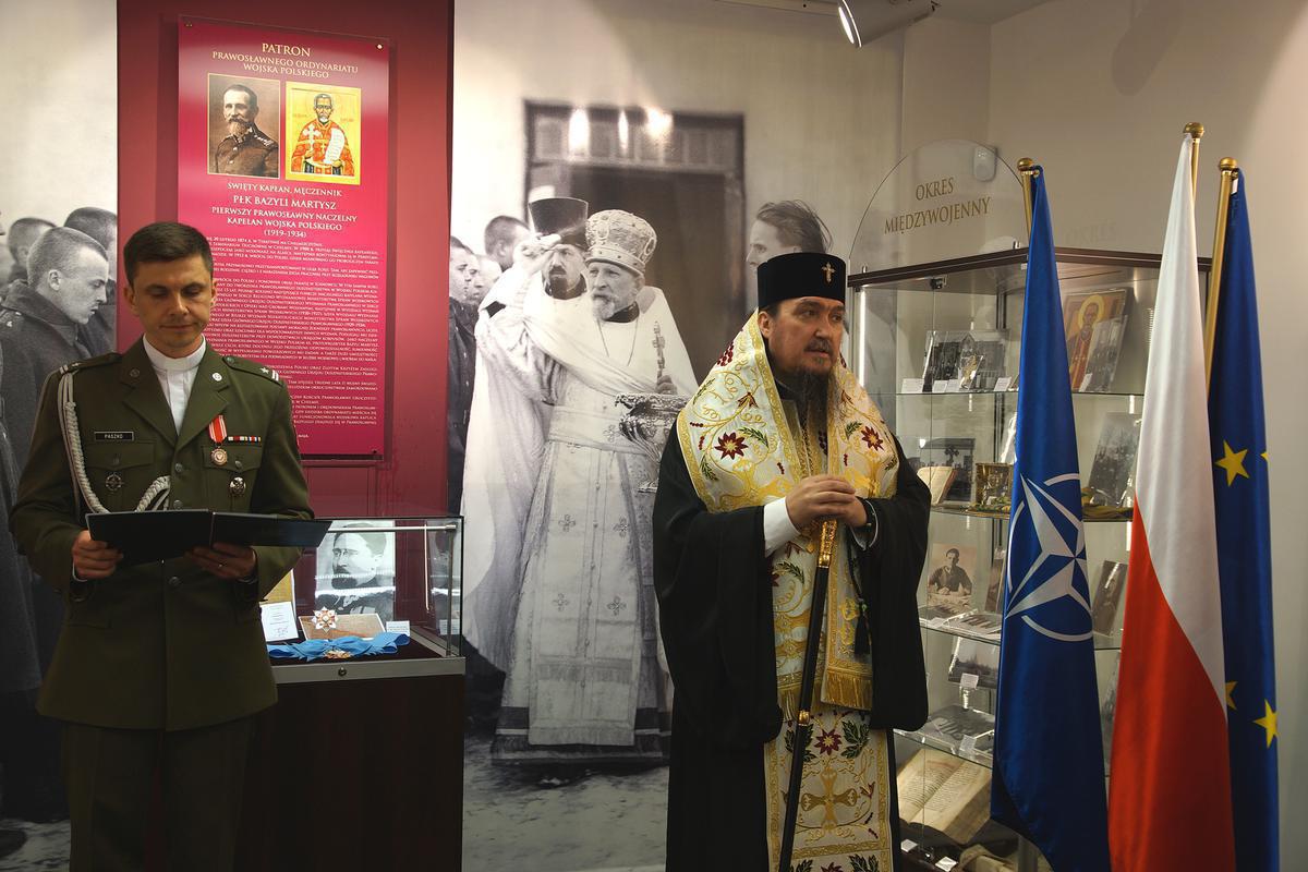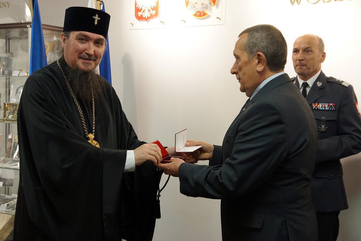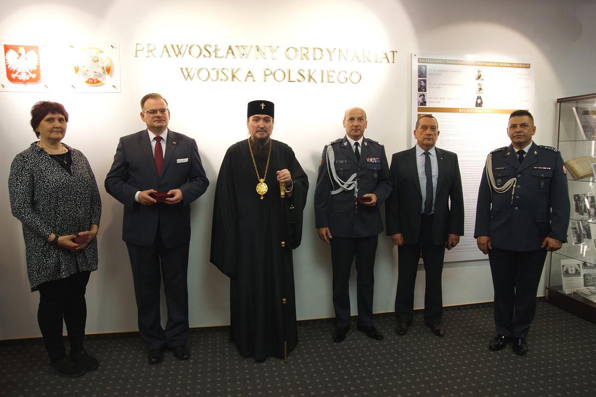 Tuż po uroczystości przecięcia wstęgi i poświęceniu Sali Tradycji, JE Abp Jerzy wręczył Odznaki Pamiątkowe Prawosławnego Ordynariatu Wojska Polskiego, które otrzymali: Szef Urzędu do Spraw Kombatantów i Osób Represjonowanych Pan Minister Jan Józef Kasprzyk, Dowódca Garnizonu Warszawa gen. dyw. Robert Głąb, Dyrektor Drukarni Wydawnictw Specjalnych Zbigniew Błażejewski, płk Artur Gałecki, Pani Urszula Kubicz-Fik oraz Redaktor Naczelny Polskiego Żołnierza Prawosławnego Pani Marta Łuksza.