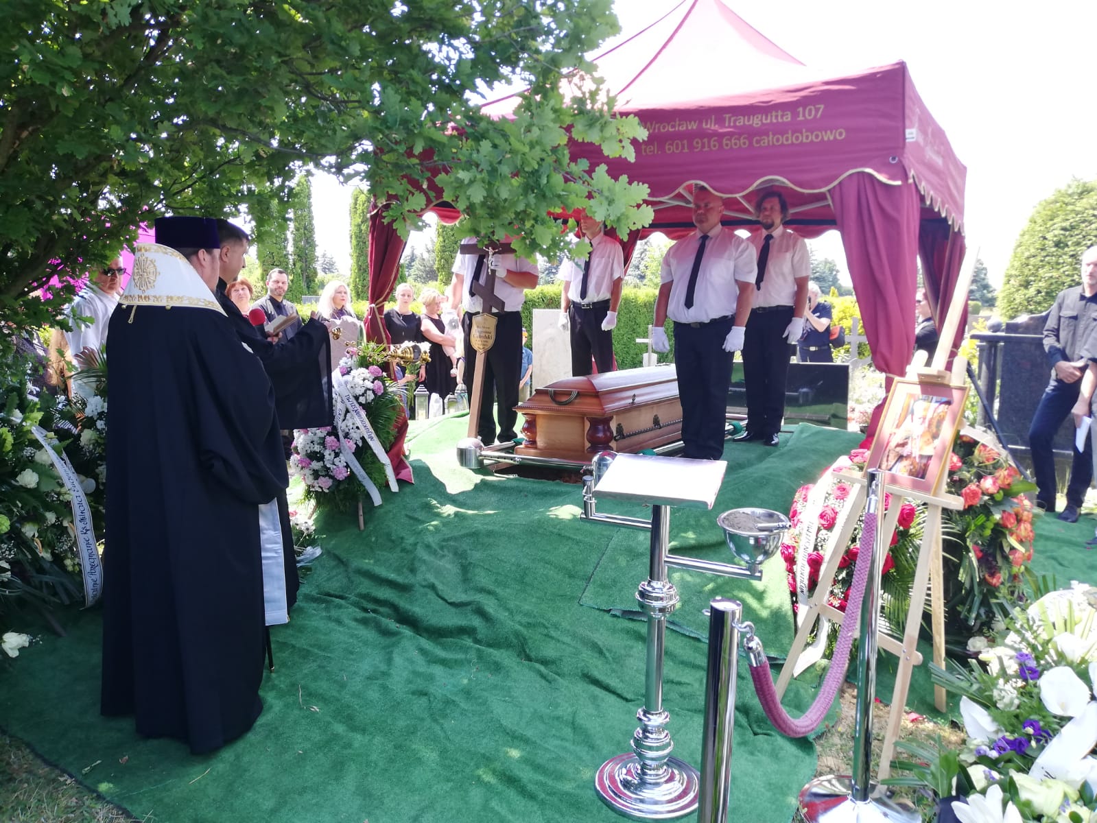 Trumna z ciałem o. Eugeniusza spoczęła w mogile w prawosławnej kwaterze Cmentarza kiełczewskiego we Wrocławiu.