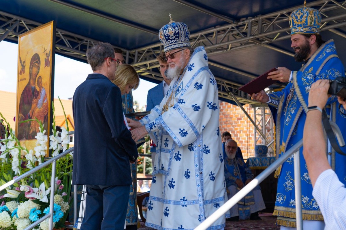 Na zakończenie uroczystości przy radosnym śpiewie „Axios” (Godny) osobom zasłużonym przy odbudowie głównej monasterskiej świątyni wręczone zostały Ordery św. Marii Magdaleny.