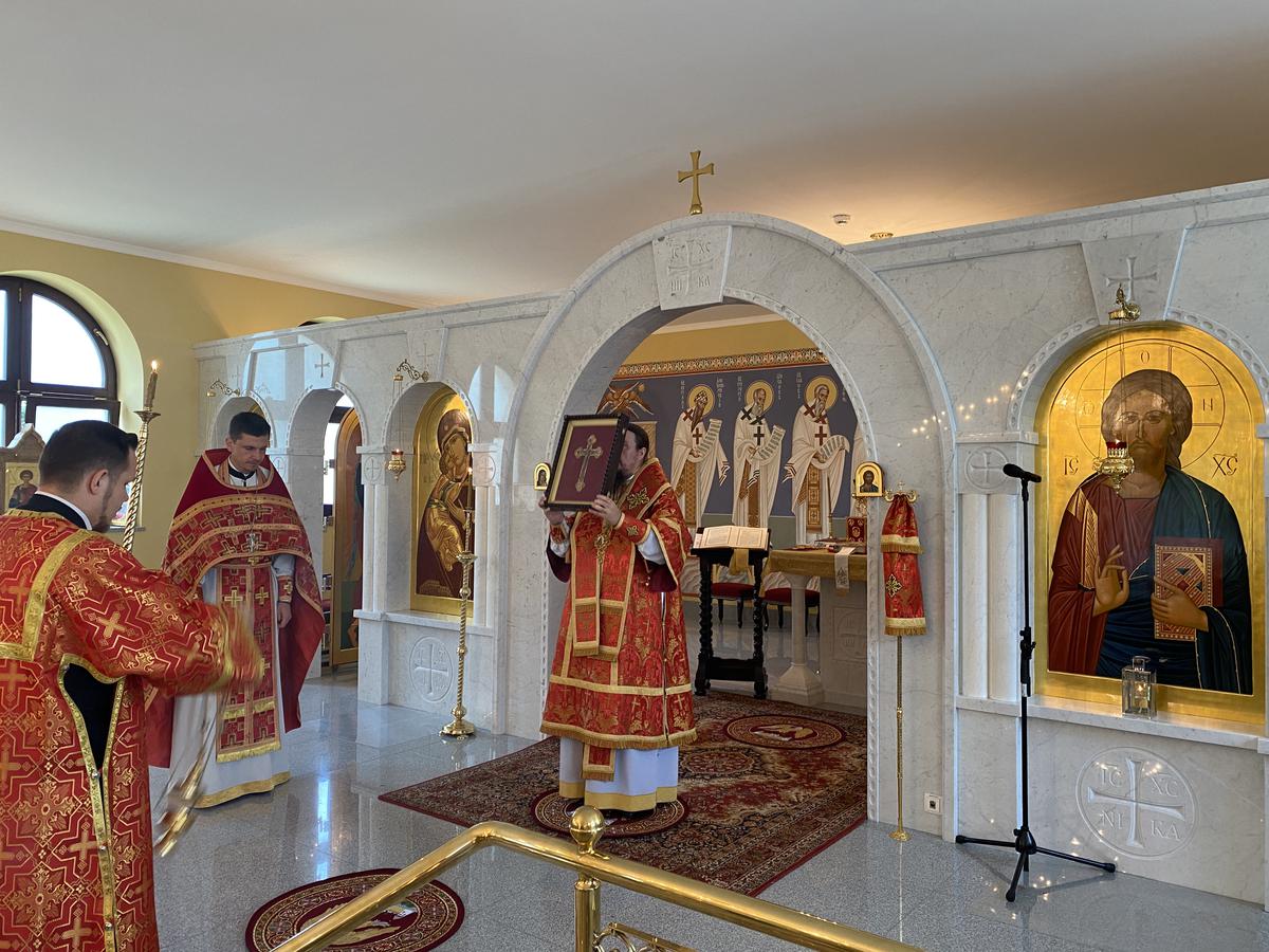 Przed nabożeństwem odbyło się uroczyste wyniesienie Czcigodnego i Życiodajnego Krzyża na środek świątyni. W tym dniu Cerkiew Prawosławna modlitewnie wspomina również św. św. męcz. siedmiu braci Machabeuszy, ich matki Salomei i nauczyciela Eleazara. Na zakończenie nabożeństwa odbyło się poświęcenie wody oraz pierwocin miodu.