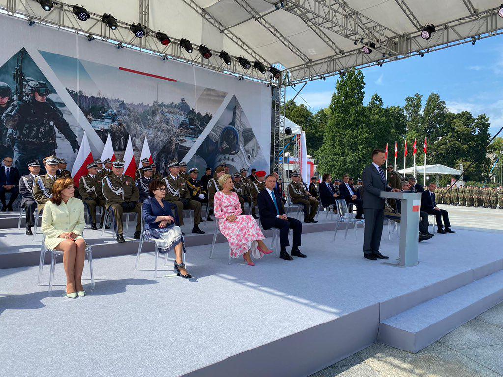 Prezydent Andrzej Duda w swoim przemówieniu złożył żołnierzom i ich rodzinom „…najserdeczniejsze życzenia, wszelkiego powodzenia w służbie dla Rzeczypospolitej”. Życzył sukcesów, awansów jak najwięcej zdrowia i bezpieczeństwa oraz rodzinnego ciepła i wszystkiego tego co najlepsze. Zwierzchnik Sił Zbrojnych podziękował także ministrowi Mariuszowi Błaszczakowi, jego współpracownikom, dowódcom Wojska Polskiego za działania jakie podejmują na rzecz modernizacji wojska. Wyraził też nadzieję, że zadanie to będzie kontynuowane i rozwijane. „Dziękuję za zapowiedź spektakularnego wzmocnienia naszych wojsk pancernych i za przyszły zakup najlepszego na świecie uzbrojenia. Żeby nasi żołnierze mogli służyć bezpiecznie i mogli służyć skutecznie, żeby mieli pewność, że to, na czym mają służyć i bronić ojczyzny, jest najlepszym, co w danym momencie można było mieć” – powiedział prezydent.