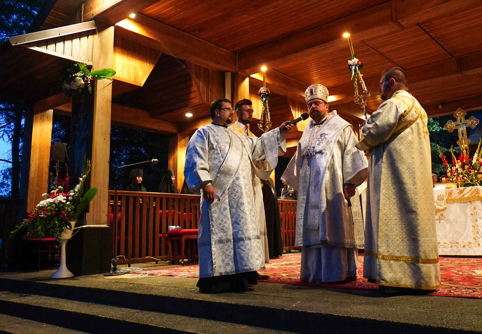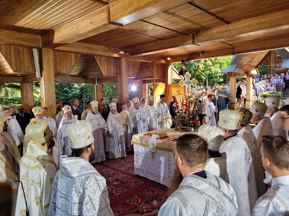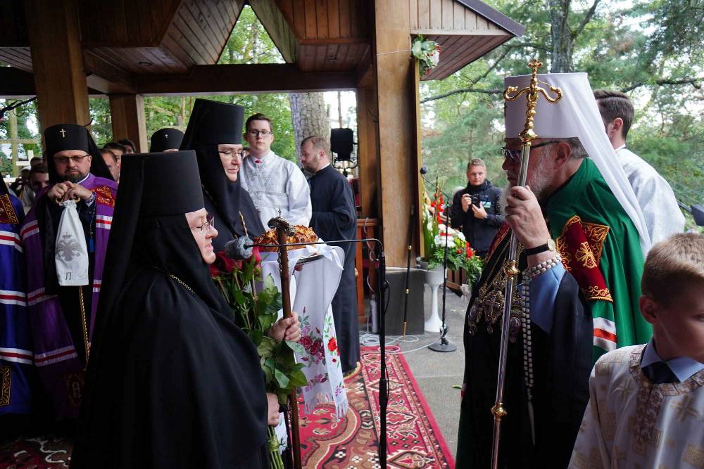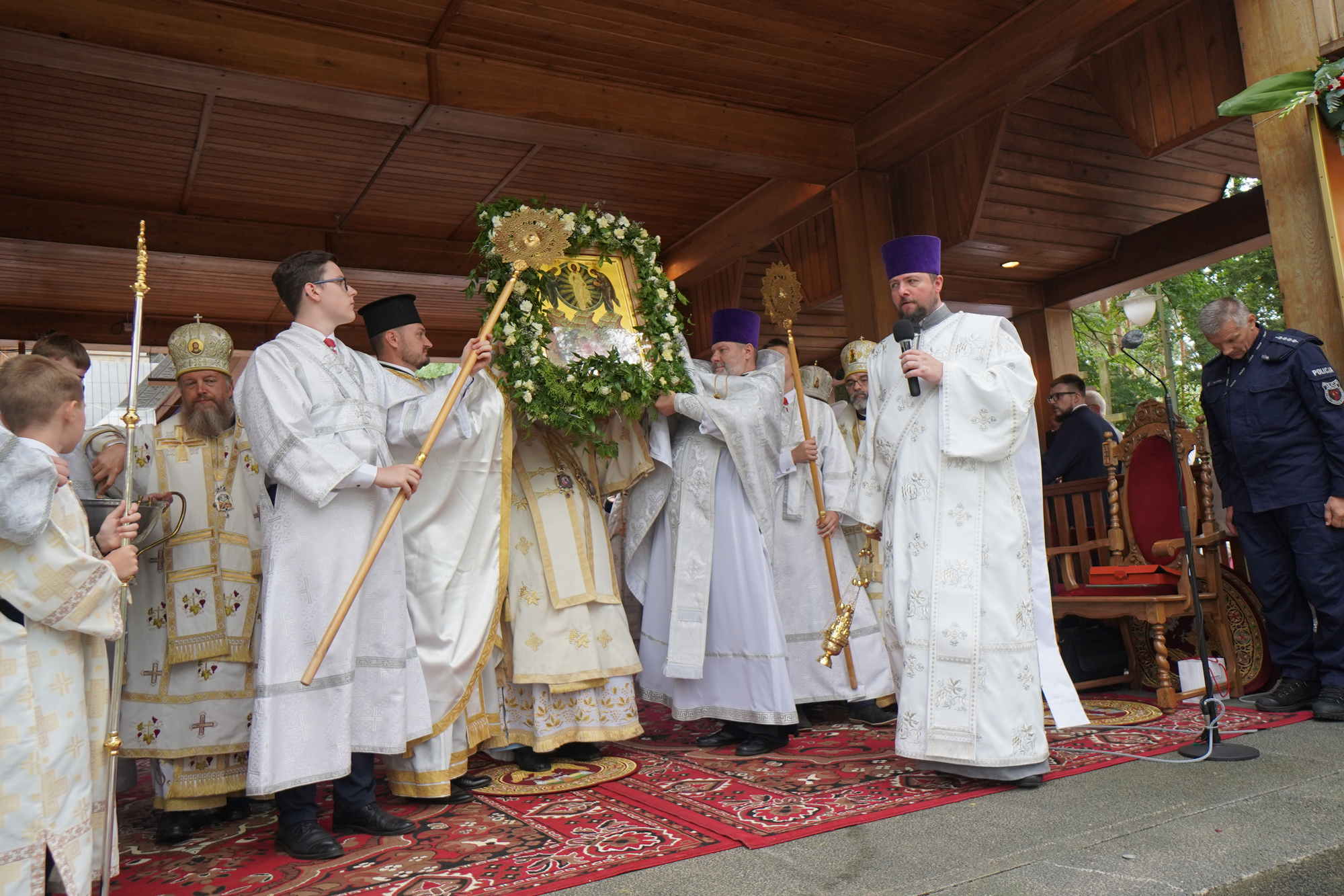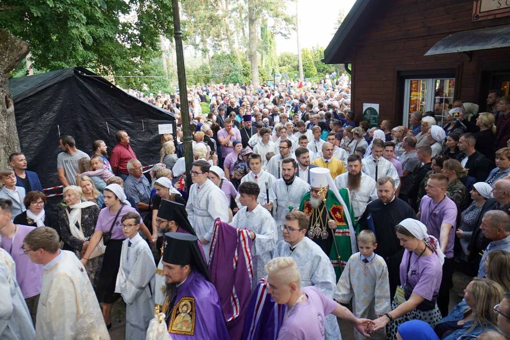 Główna Liturgia wieńcząca uroczystości zakończyła się uroczystą procesją wokół monasterskiej świątyni, podczas której poświęcono przyniesione przez wiernych owoce. Jego Eminencja metropolita Sawa w końcowym słowie skierowanym do wiernych zaznaczył, że „Chrystus zwyciężył i to zwycięstwo dokonało się poprzez krzyż, który jest siłą naszej wiary. Mówimy o Przemienieniu Chrystusa, ale to nie Chrystus się zmienił, a zmienił się tylko człowiek, zostało zdjęte bielmo z jego oka i człowiek zobaczył cząstkę chwały Bożej. Owe bielmo musimy stale zdejmować ze swoich oczu, aby odczuć swojego Chrystusa, swojego Zbawiciela, naszego Nauczyciela, naszego Ojca, głowę naszej Cerkwi i świata”. Jego Eminencja złożył również podziękowania za udział w uroczystościach przedstawicielom władz krajowych i samorządowych oraz służbom mundurowym
