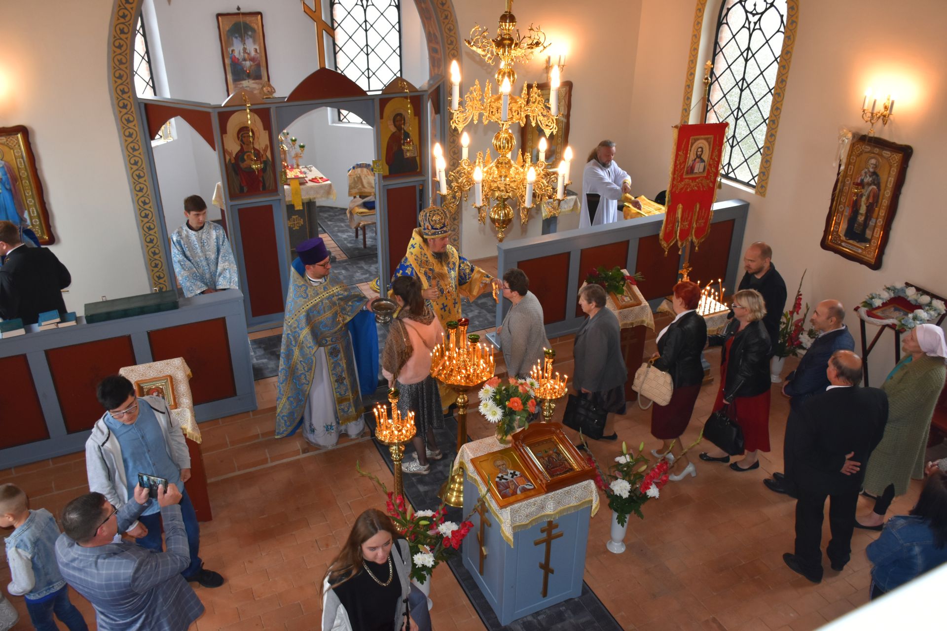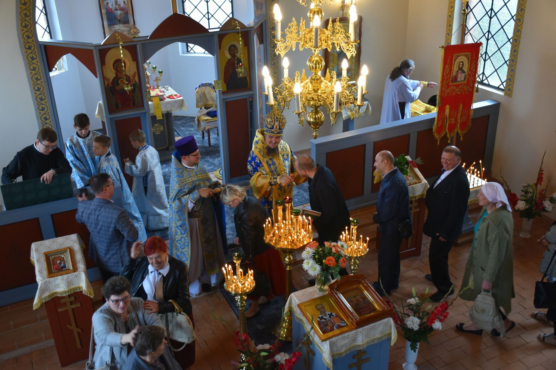 W drzwiach świątyni Ekscelencję chlebem i solą powitał starosta cerkiewny Jan Lalko a następnie proboszcz ks. Jarosław Biryłko. W liturgii uczestniczyli również księża: ks. Gienadiusz Semeniuk ze Szczecina i ks. protodiakon Mieczysław Oleśniewicz z Wrocławia. Swoją obecnością zaszczyciła parafię również starosta powiatu stargardzkiego, pani Iwona Wiśniewska. Dzieci przystąpiły do spowiedzi i eucharystii, a po liturgii odprawiony został molebień w intencji pomyślnego nowego roku szkolnego. Radosnym akcentem tego dnia było również poświęcenie nowego dzwonu. Po ponad czterdziestu latach we wsi Dolice znów można było usłyszeć jego dźwięk. Władyka Jerzy zwrócił się do dzieci i ich rodziców z nadzieją na pomyślny przebieg tegorocznych zajęć w szkole i życzył młodym zebranym czerpania wielu radości ze zdobywania wiedzy w szkolnych ławkach. Przedłużając mile rozpoczęty dzień, wierni wspólnie z Władyką udali się na poczęstunek.