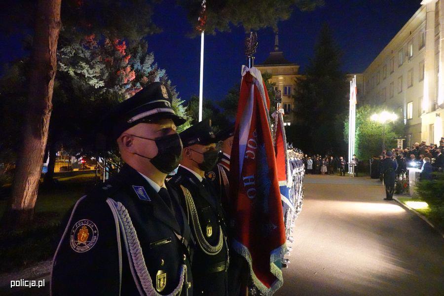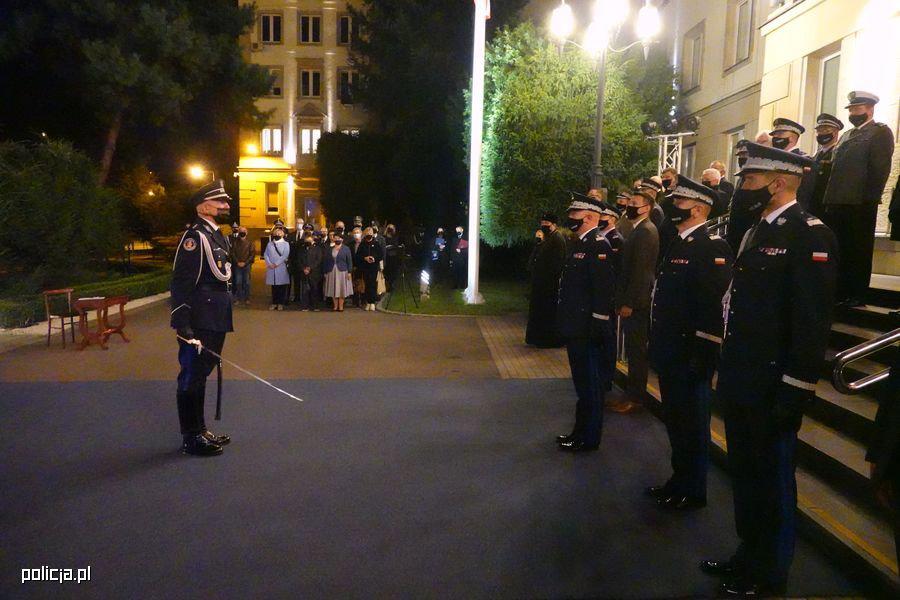 Po dokonaniu przeglądu pododdziału odegrano hymn Rzeczypospolitej Polskiej. Tradycyjnie przed Obeliskiem „Poległym Policjantom - Rzeczpospolita Polska” nastąpiła uroczysta zmiana warty, po czym odczytano Apel Pamięci, a następnie złożono wieńce i kwiaty.