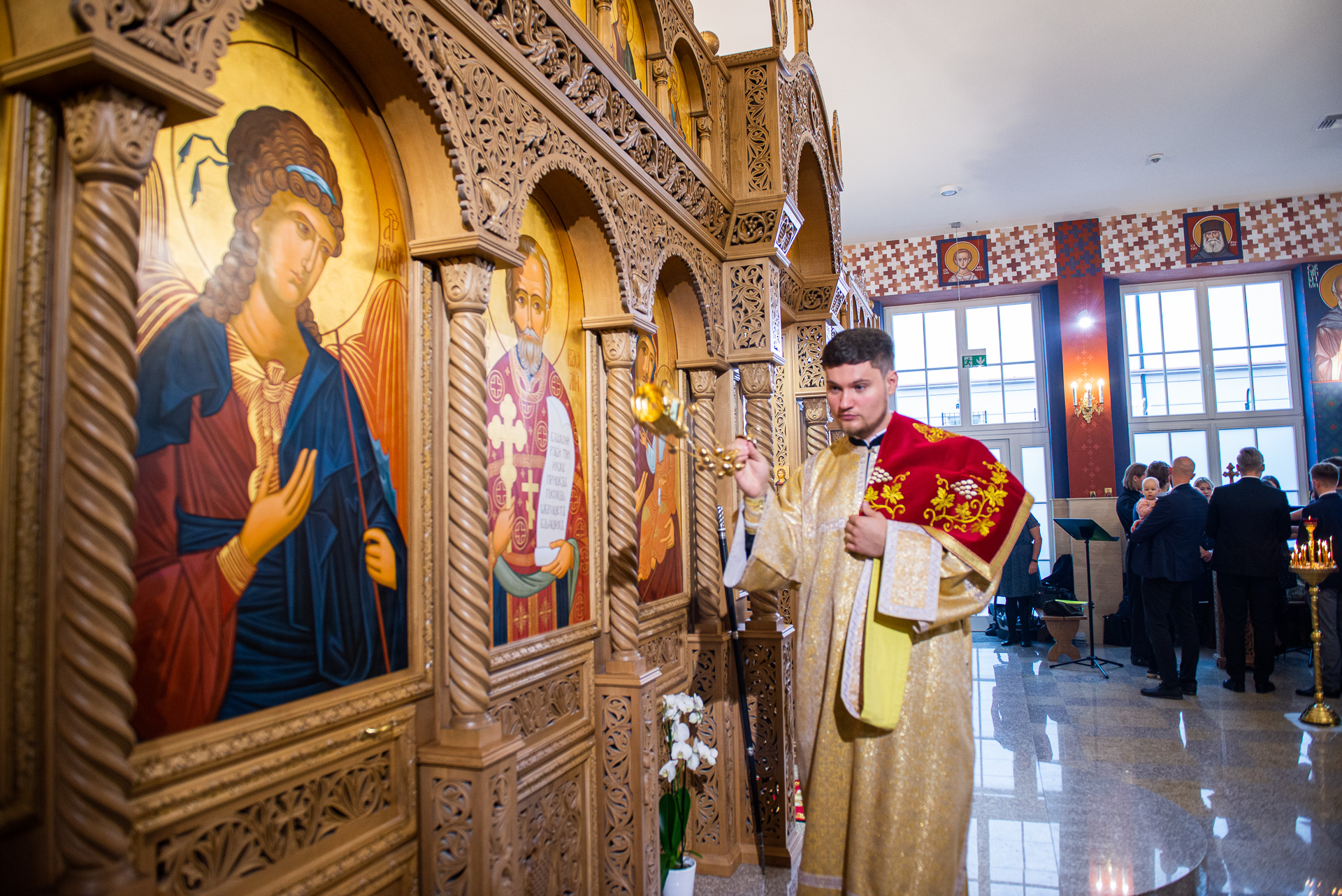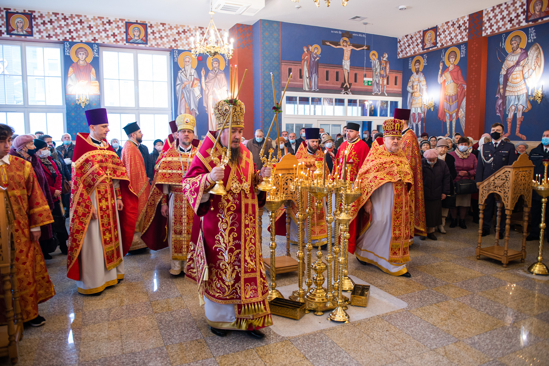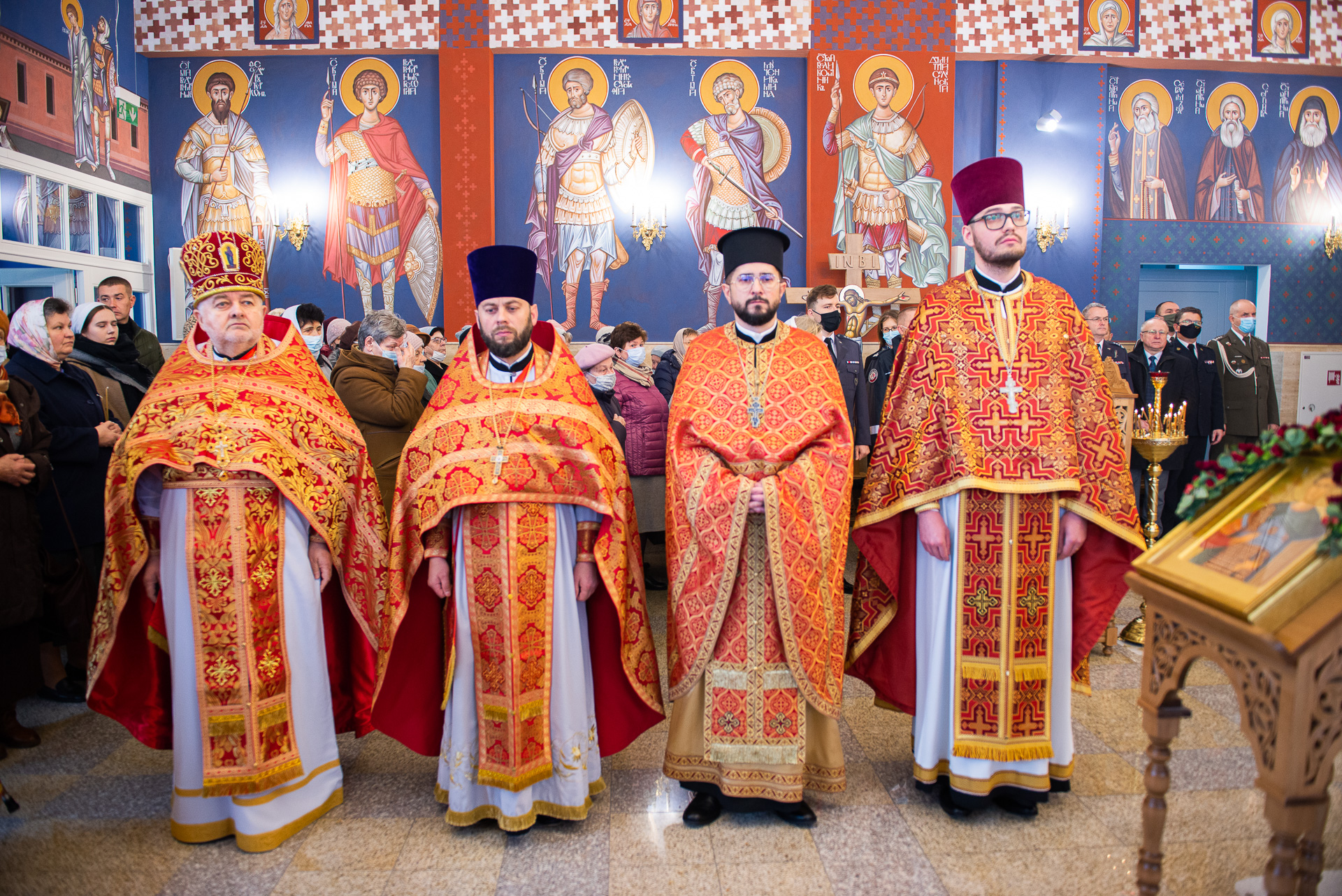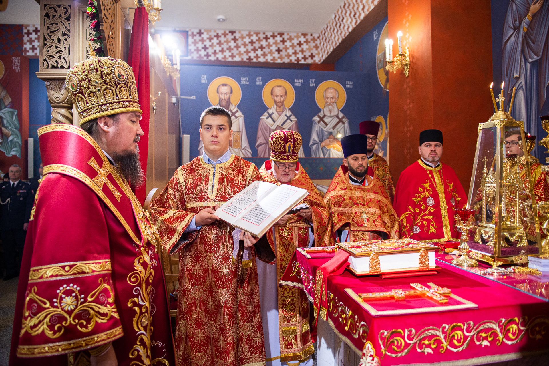 U progu świątyni Hierarchę powitała delegacja wiernych prosząca Władykę o modlitwę za wszystkich zgromadzonych oraz o arcypasterskie błogosławieństwo. Następnie według zwyczajowego porządku p.o. proboszcza przywitał Ekscelencję oraz poprosił o przewodniczenie Boskiej Liturgii. Wśród zgromadzonych gości byli obecni: gen. dyw. pil. Anatol Czaban, płk Marek Adamowicz, Pan Dominik Zaremba, Pan Maciej Więckowski – prezes zarządu spółki AMW SINEVIA, Pan Marek Jassak – wiceprezes, Pan Krzysztof Stankiewicz, Pan Dariusz Bartosiński, płk Paweł Adam Lachowski – dowódca Garnizonu Białystok będący jednocześnie dowódcą 18. Białostockiego Pułku Rozpoznawczego, płk SG Stanisław Supiński – Zastępca Komendanta Podlaskiego Oddziału Straży Granicznej, płk Sławomir Kocanowski – dowódca 1. Podlaskiej Brygady Obrony Terytorialnej, kpt. Jakub Prokopiuk – reprezentujący Komendanta 25. Wojskowego Oddziału Gospodarczego, st. bryg. Robert Dzierżek – zastępca Wojewódzkiego Komendanta Państwowej Straży Pożarnej, nadkom. Jarosław Antoniuk – zastępca naczelnika Podlaskiego Urzędu Celno – Skrabowego, ks. mjr Tomasz Wigłasz – kapelan ewangelicki.