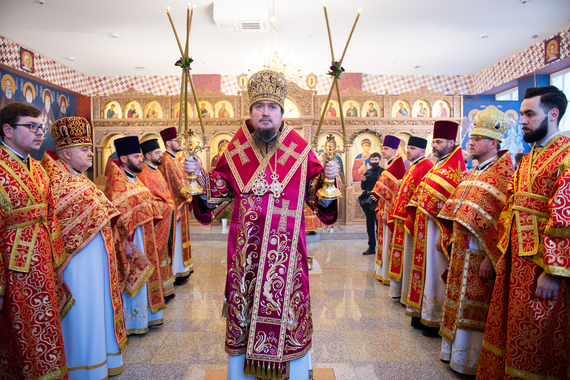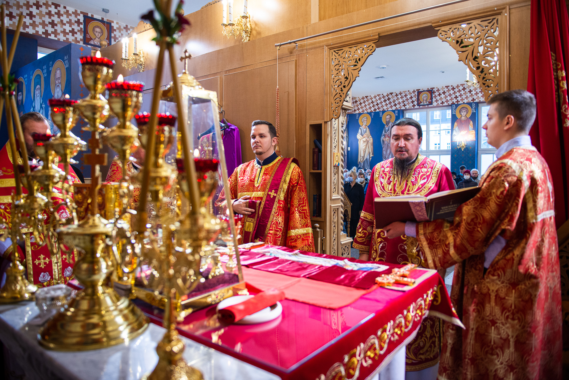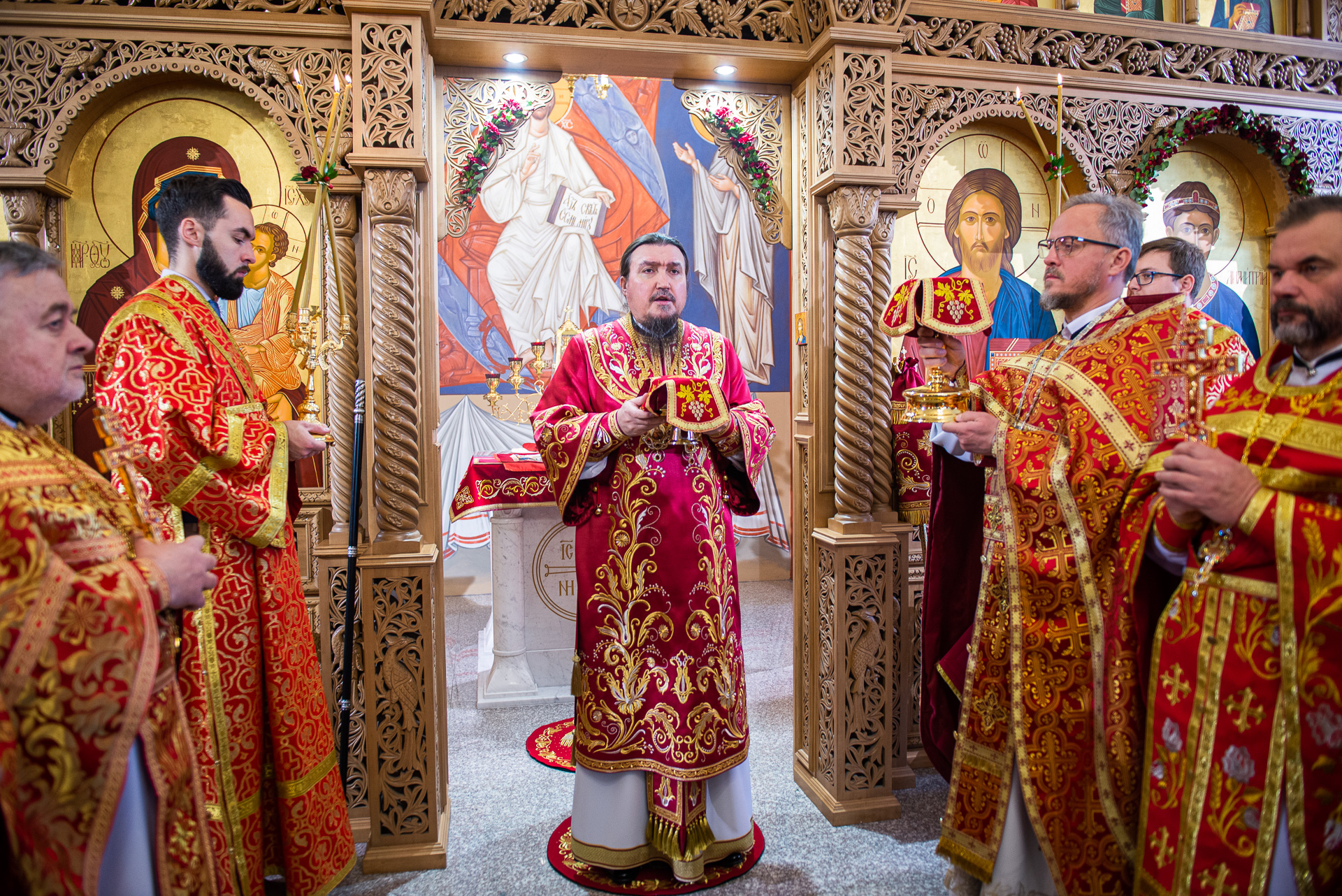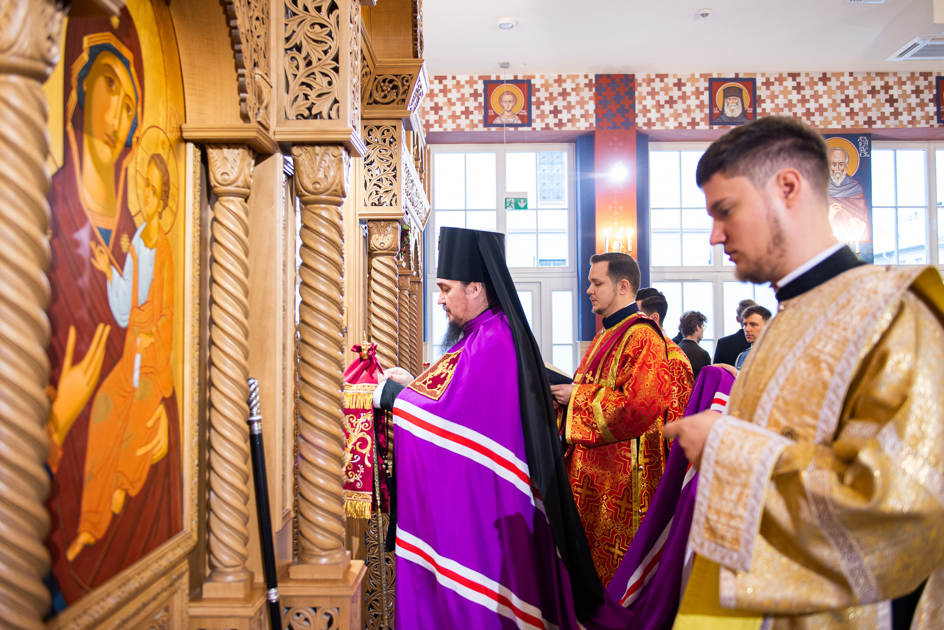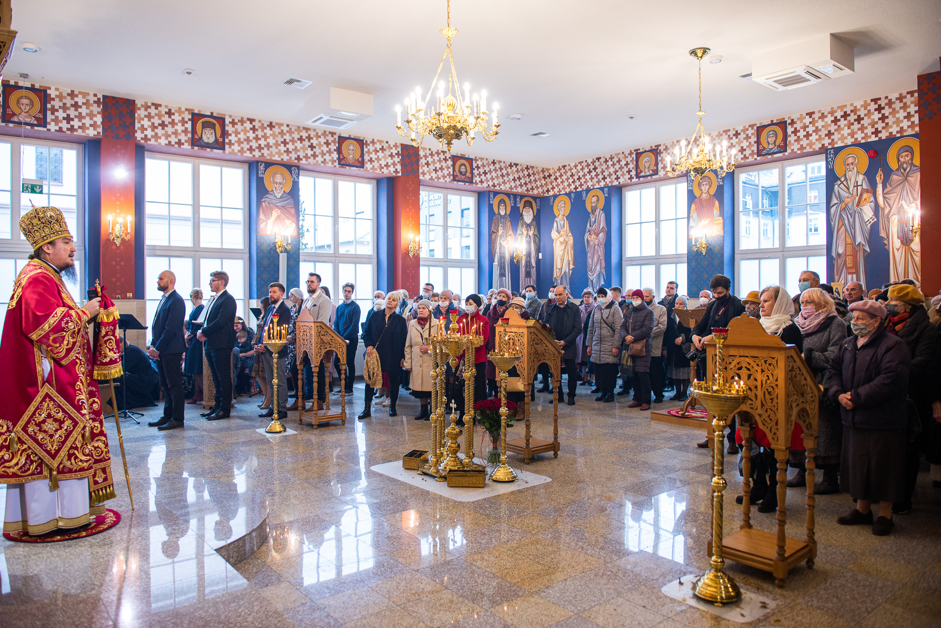 U progu świątyni Hierarchę powitała delegacja wiernych prosząca Władykę o modlitwę za wszystkich zgromadzonych oraz o arcypasterskie błogosławieństwo. Następnie według zwyczajowego porządku p.o. proboszcza przywitał Ekscelencję oraz poprosił o przewodniczenie Boskiej Liturgii. Wśród zgromadzonych gości byli obecni: gen. dyw. pil. Anatol Czaban, płk Marek Adamowicz, Pan Dominik Zaremba, Pan Maciej Więckowski – prezes zarządu spółki AMW SINEVIA, Pan Marek Jassak – wiceprezes, Pan Krzysztof Stankiewicz, Pan Dariusz Bartosiński, płk Paweł Adam Lachowski – dowódca Garnizonu Białystok będący jednocześnie dowódcą 18. Białostockiego Pułku Rozpoznawczego, płk SG Stanisław Supiński – Zastępca Komendanta Podlaskiego Oddziału Straży Granicznej, płk Sławomir Kocanowski – dowódca 1. Podlaskiej Brygady Obrony Terytorialnej, kpt. Jakub Prokopiuk – reprezentujący Komendanta 25. Wojskowego Oddziału Gospodarczego, st. bryg. Robert Dzierżek – zastępca Wojewódzkiego Komendanta Państwowej Straży Pożarnej, nadkom. Jarosław Antoniuk – zastępca naczelnika Podlaskiego Urzędu Celno – Skrabowego, ks. mjr Tomasz Wigłasz – kapelan ewangelicki.