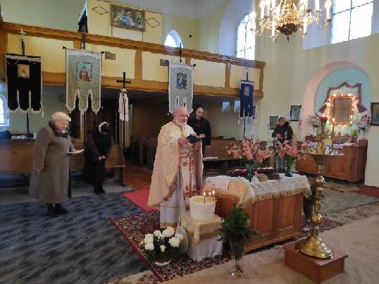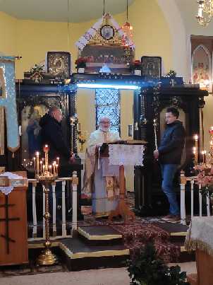 W końcowym słowie proboszcz pozdrowił wszystkich zebranych, a w szczególności przystępujących do Pryczastia, a obecnemu wśród wiernych solenizantowi, ks. Aleksander złożył najserdeczniejsze życzenia. Chór zaś zaśpiewał tradycyjne Mnohaja lita.