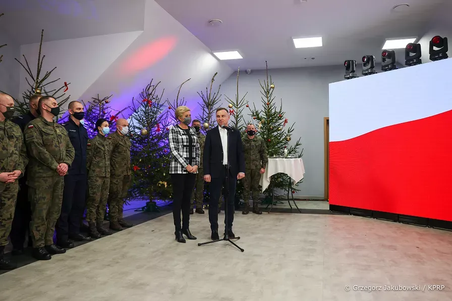 Podczas spotkania Prezydent Andrzej Duda podkreślił, że tysiące funkcjonariuszy, strażników granicznych, policjantów i żołnierzy wykonuje obecnie służbę przy granicy polsko–białoruskiej, „w absolutnej większości wypadków z daleka od swoich domów”.