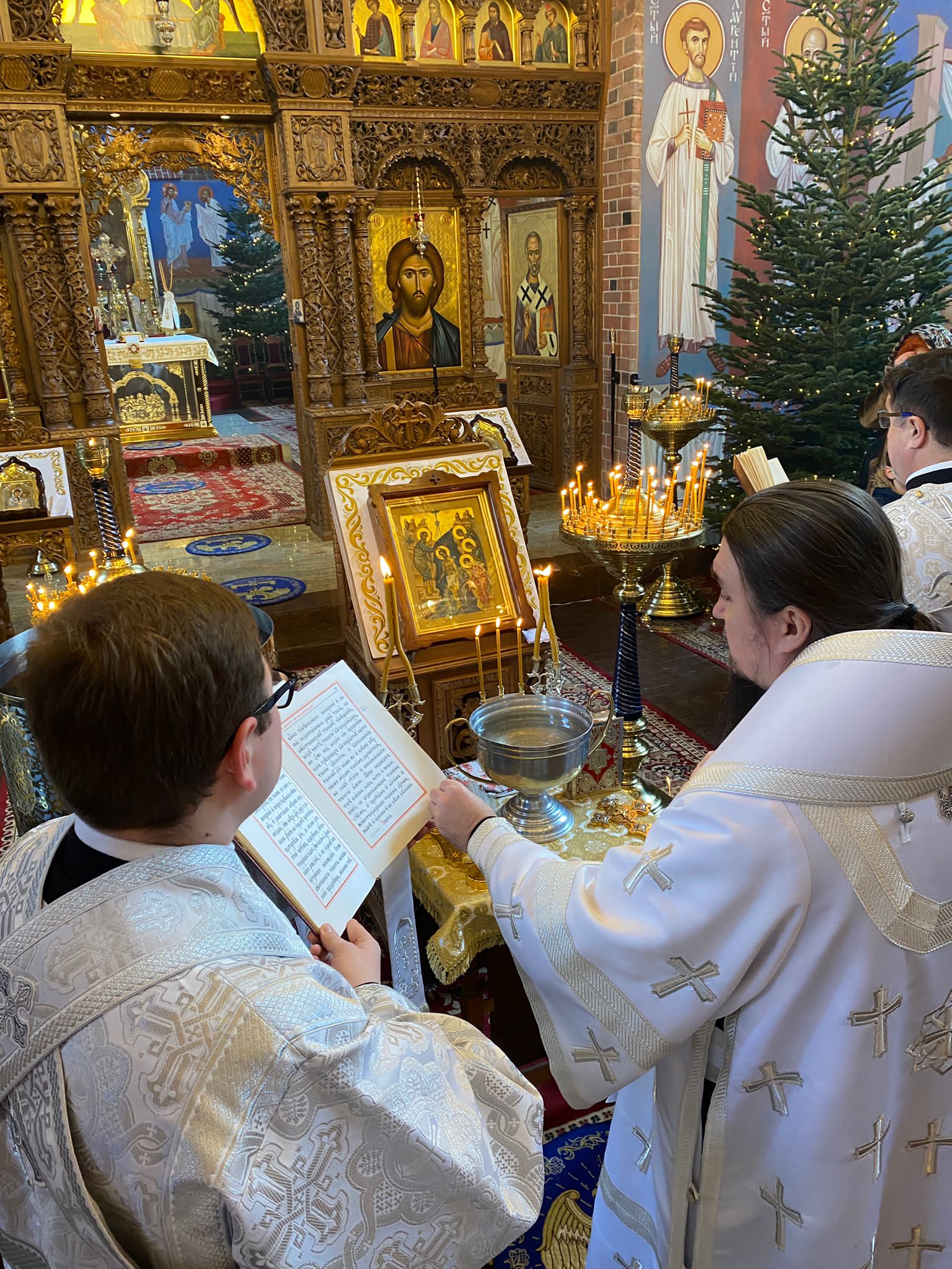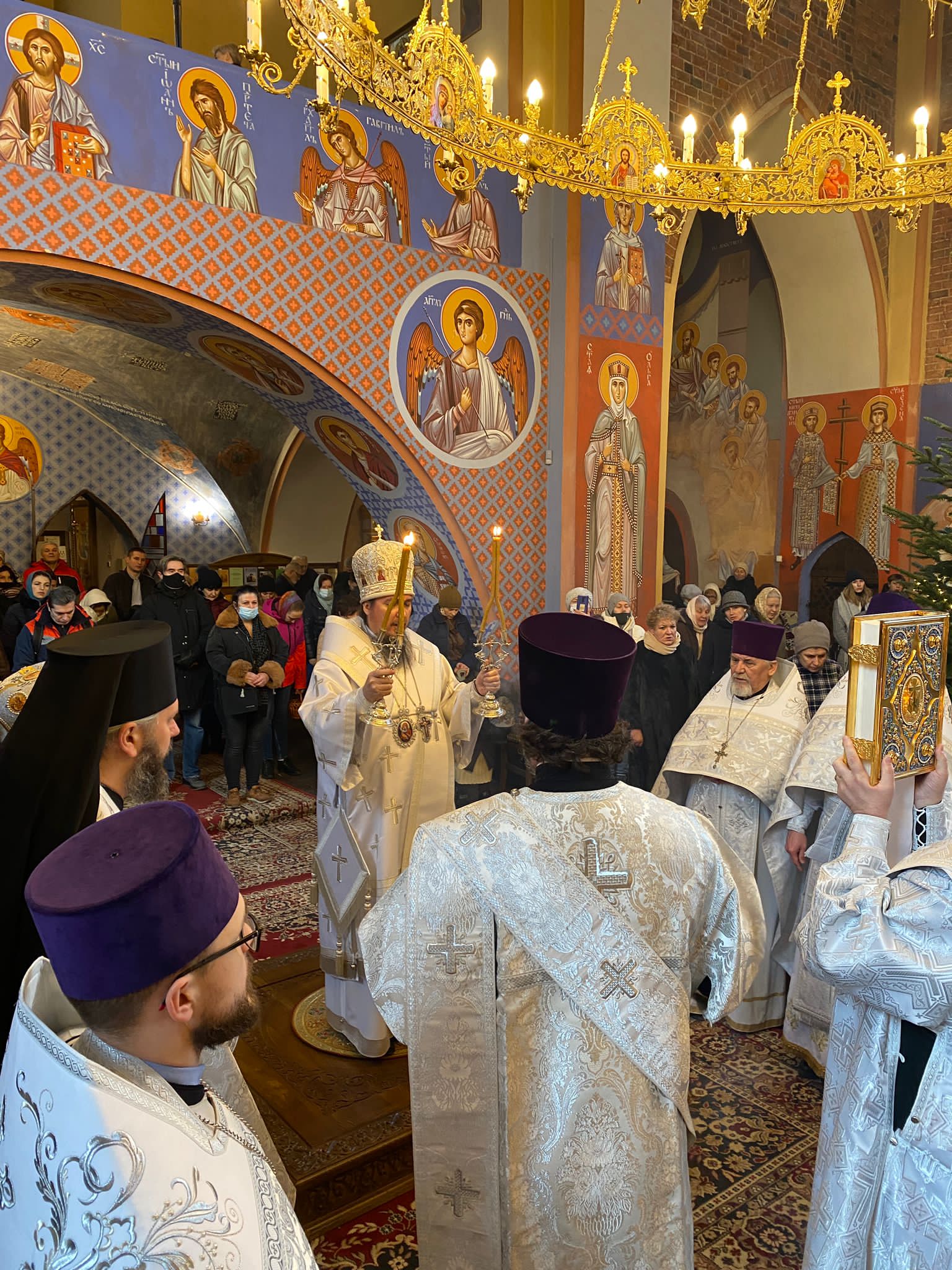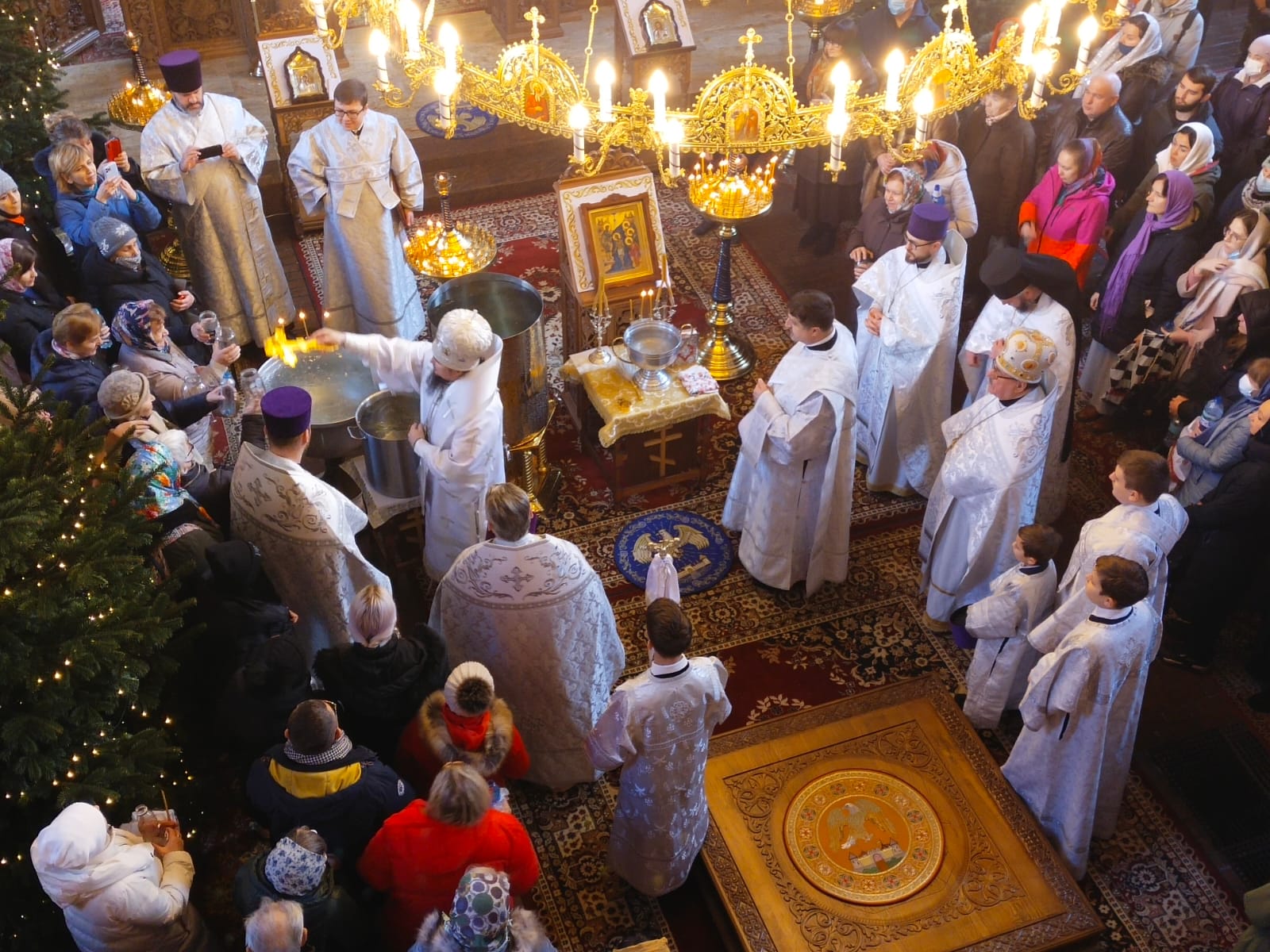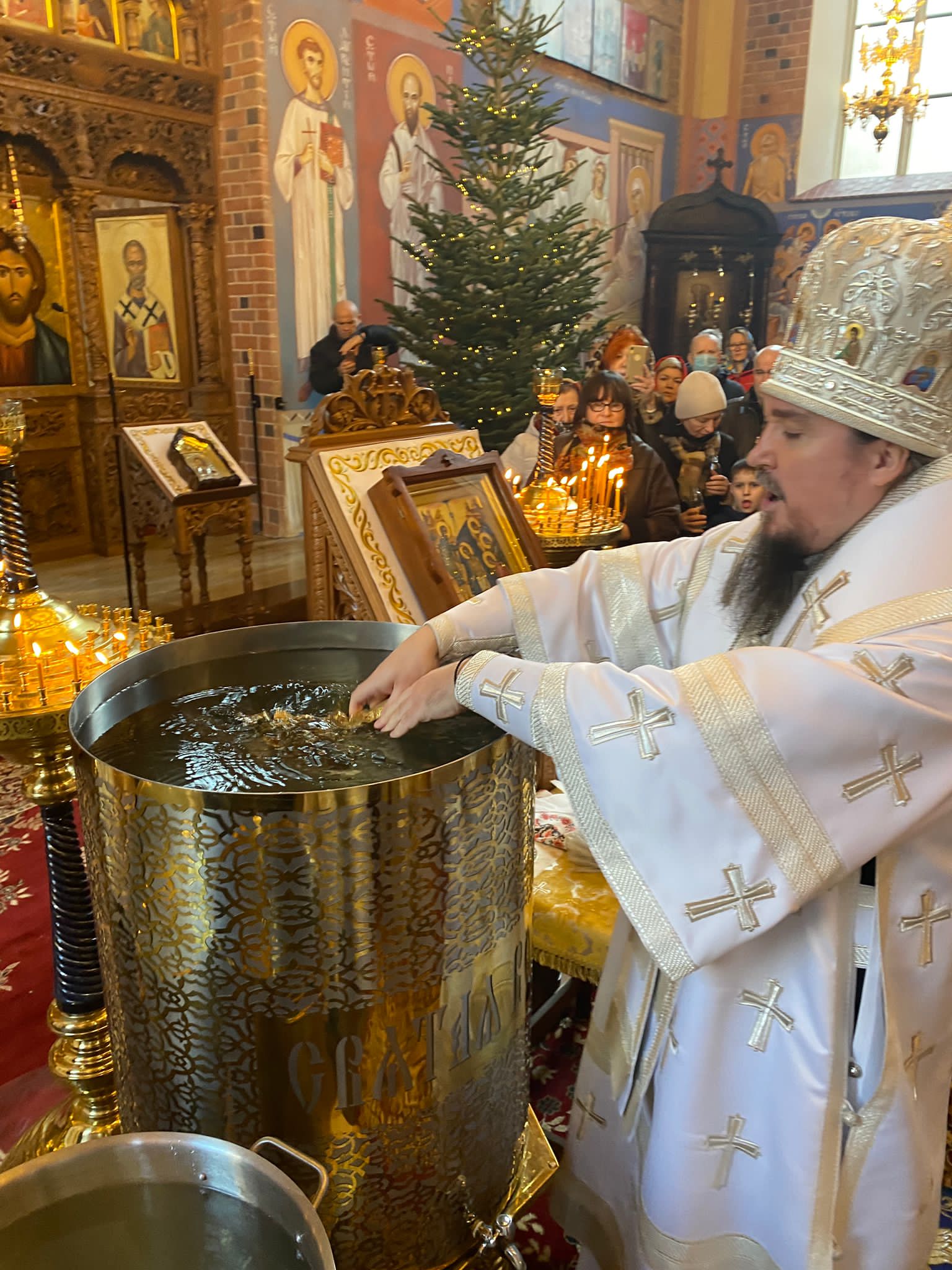 W wigilię święta arcybiskup Jerzy w asyście katedralnego duchowieństwa sprawował nabożeństwa Królewskich Godzin, Wieczerni oraz Liturgię św. Bazylego Wielkiego. Wieczorem tego samego dnia nabożeństwo Wielkiego Powieczerza oraz Jutrzni. Następnego dnia, w sam dzień święta podczas Boskiej Liturgii arcybiskup Jerzy zwrócił się z homilią do wiernych. Hierarcha przypomniał historię święta, kiedy Chrzest Pański był obchodzony razem ze świętem Bożego Narodzenia. Władyka zwrócił uwagę na wyjątkowość rytu Wielkiego Oświęcenia Wody, który jest de facto rytem chrzcielnym. Pouczając o świętej wodzie - wielkiej hagiasmie, abp. Jerzy podkreślił, że woda “jordańska” nie jest świętsza od innej wody święconej, a jej wyjątkowość bierze się z naszej wiary i prawidłowo rozumianej pobożności. Władyka podkreślił, że nigdy woda święcona nie może być rozumiana jako substytut, zamiennik Eucharystii. Nawiązując do ewangelicznej historii święta, zwrócił uwagę, że rzeka Jordan do chrztu Chrystusa uważana była za wyjątkowo niebezpieczną lub wręcz w jakimś sensie przeklętą i straszną. Ze względu na jej porywczość oraz tajemniczy, napawający lękiem kolor wód, bano się wchodzić do Jordanu. Odpowiadając tym lękom teksty liturgiczne święta Ojawienia Pańskiego mówią o tym, że Jezus zdeptał, pokonał i przepędził demoniczne siły ukryte w wodach Jordanu przemieniając dotychczas straszne wody w źródło życia i uświęcenia.