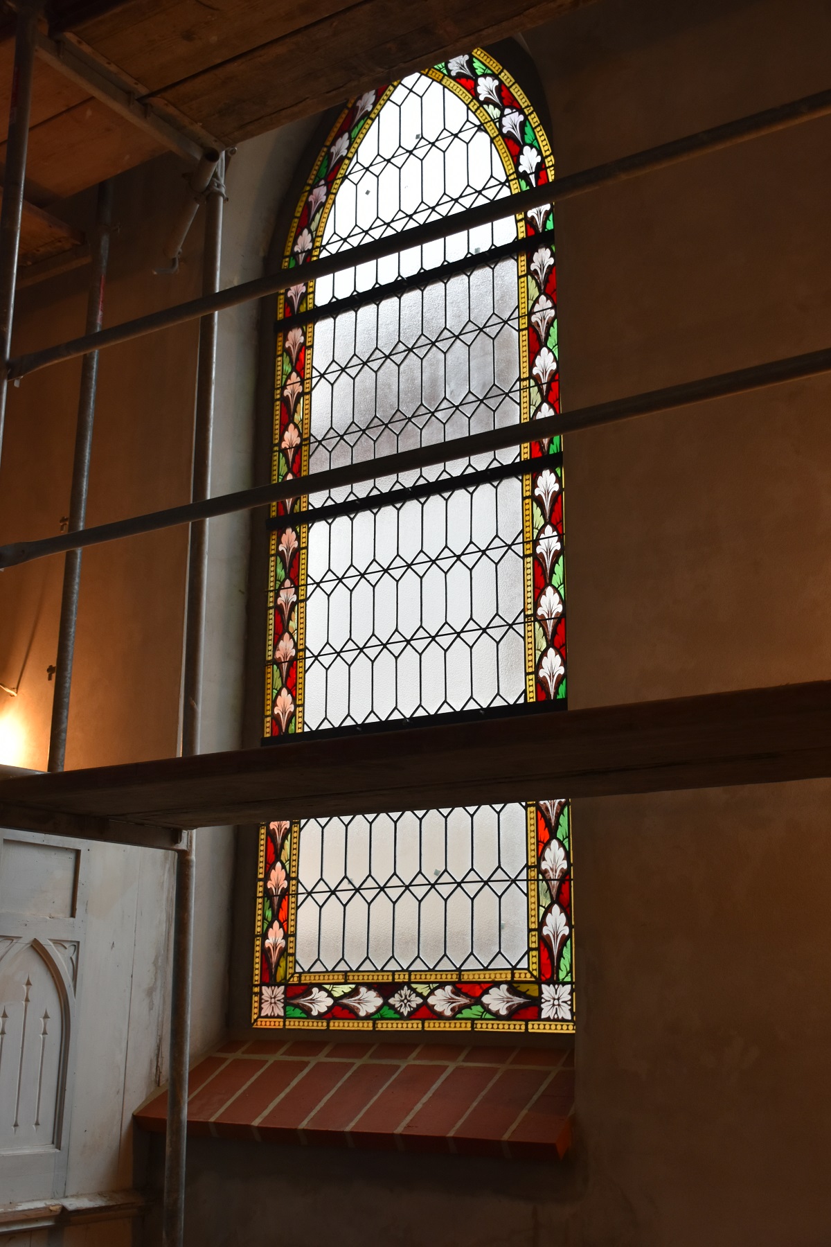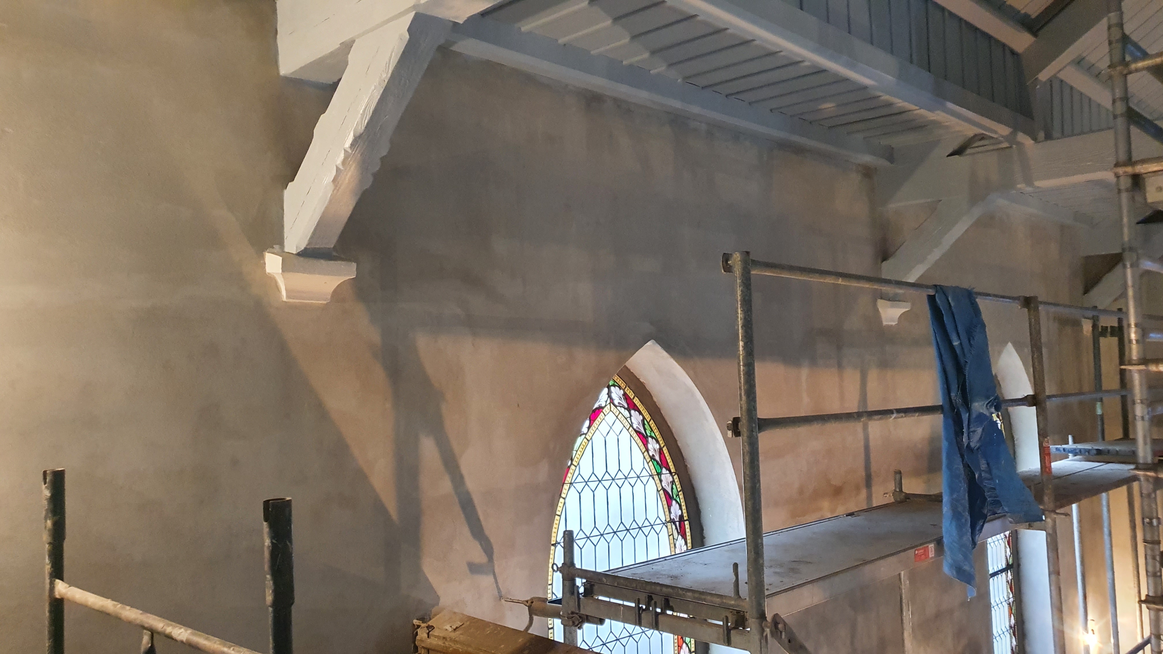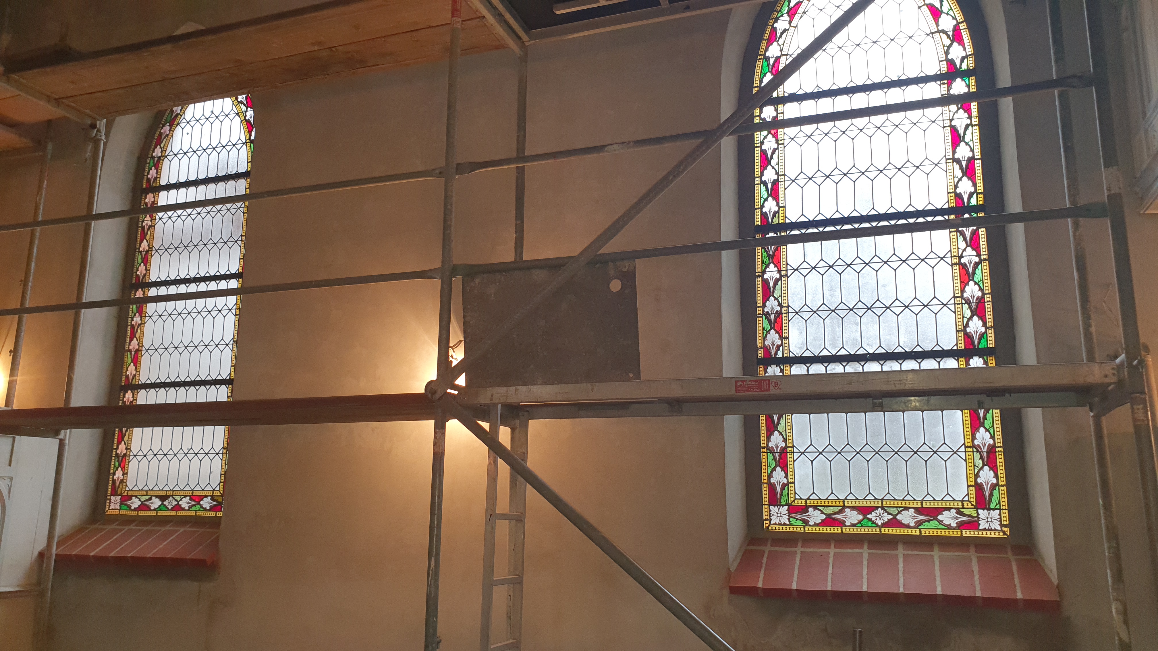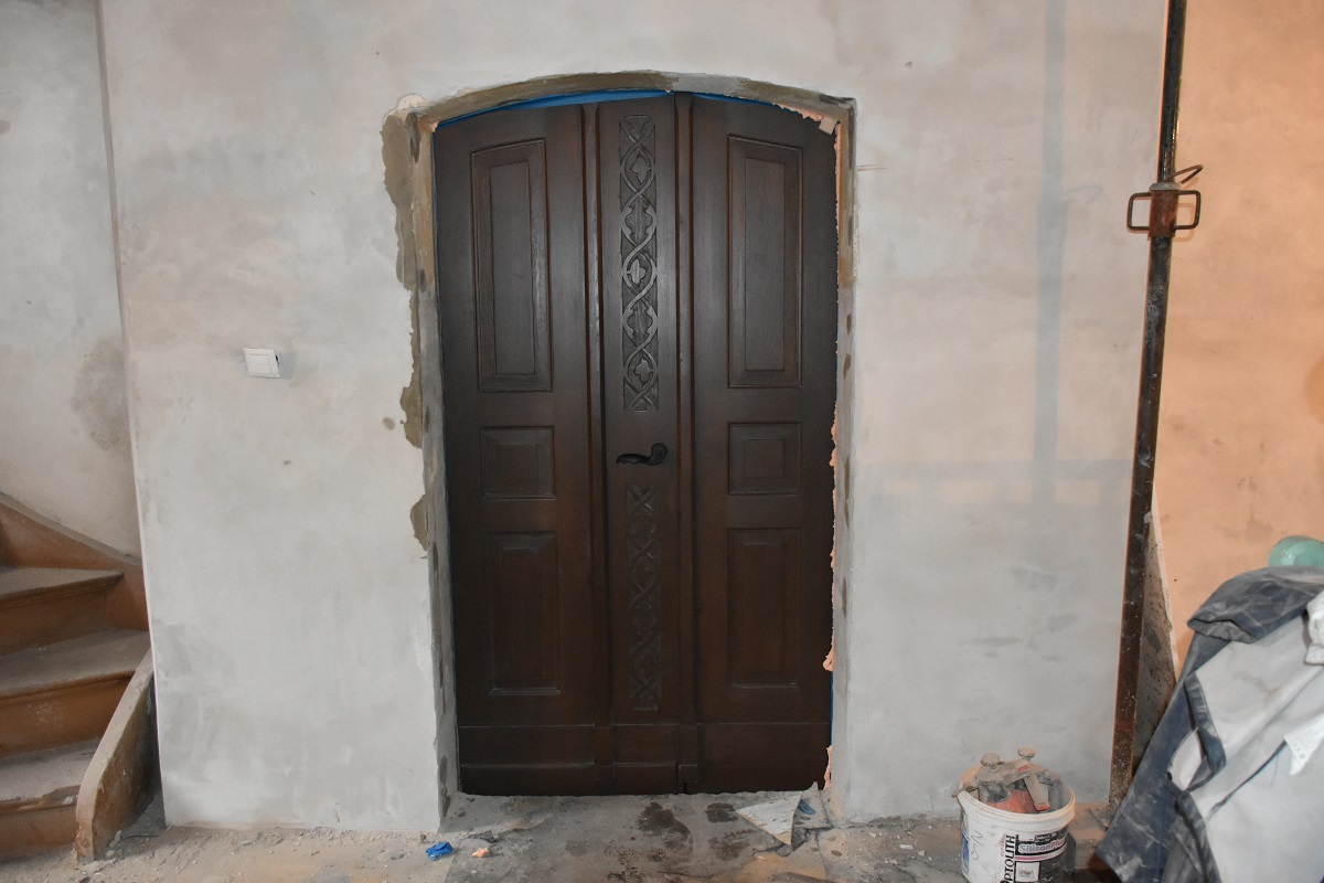 Zakres prac obejmował , remont tynków wewnętrznych, remont stolarki okiennej i drzwiowej wraz z konserwacją zabytkowych witraży oraz malowanie stropu.