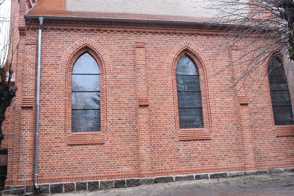 Zakres prac obejmował remont dwóch ścian bocznych i ściany ołtarzowej. Spoinowanie, czyszczenie i wymianą uszkodzonych cegieł oraz kształtek . Udało się zakończyć całkowity remont zewnętrzny świątyni.