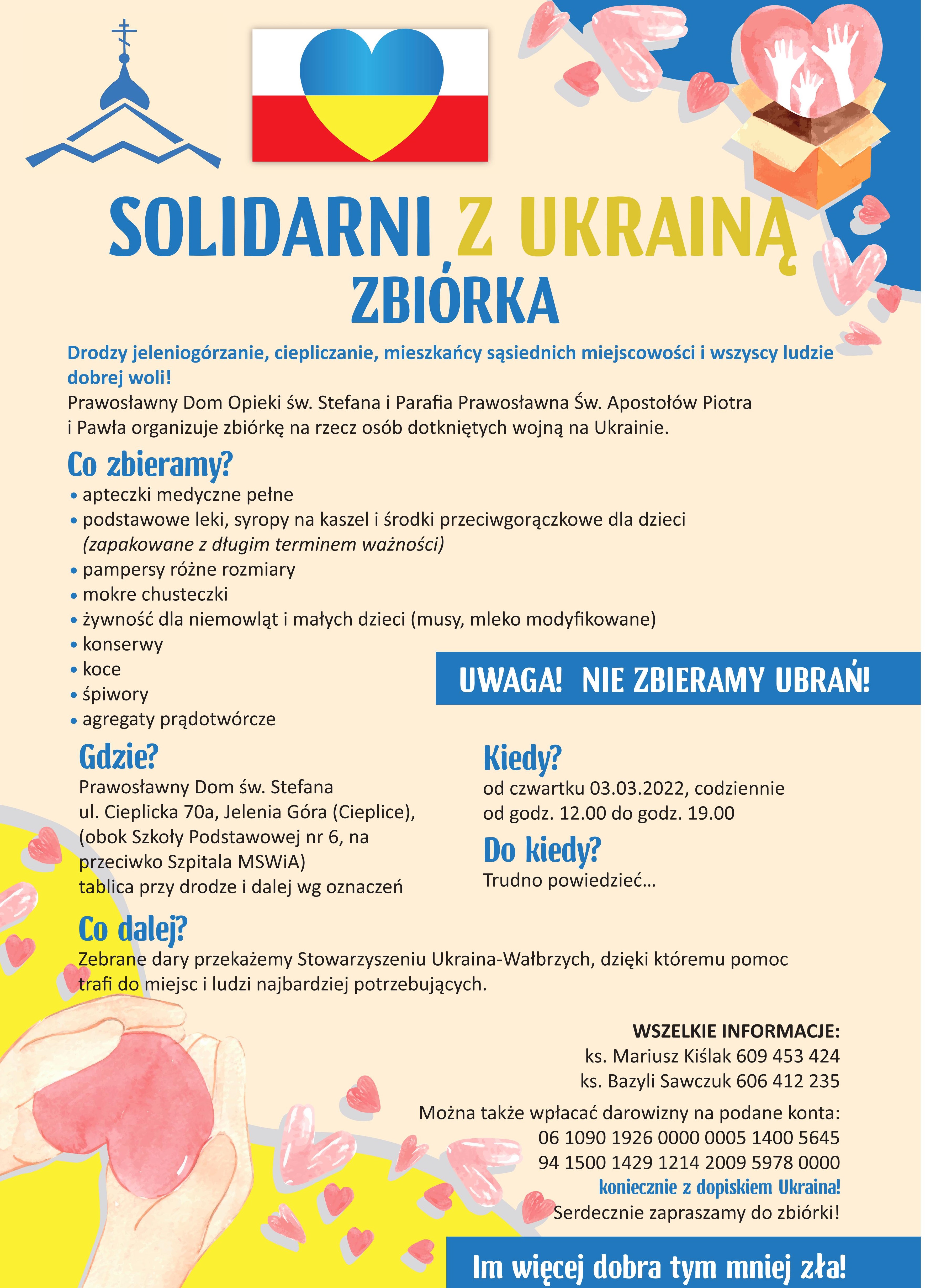 Zebrane dary przekażemy Stowarzyszeniu Ukraina-Wałbrzych, dzięki któremu pomoc trafi do miejsc i ludzi najbardziej potrzebujących.