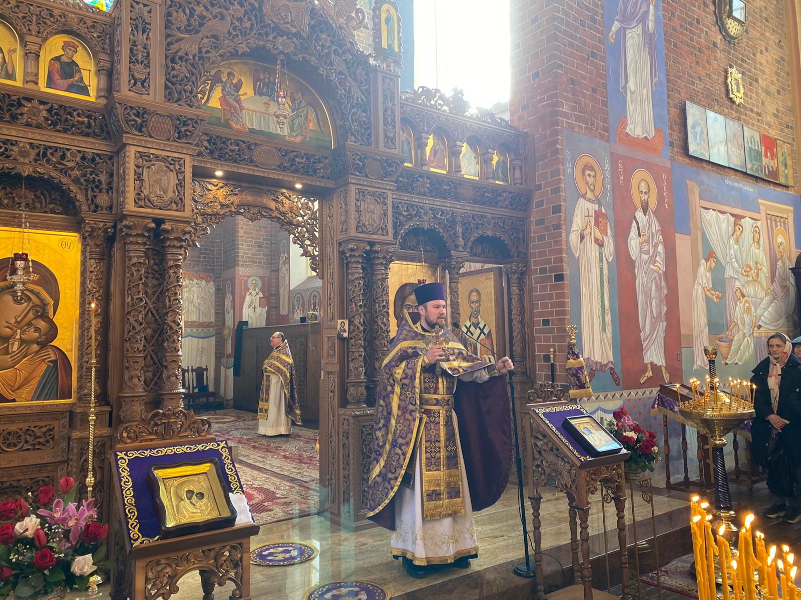 “Witam was serdecznie w naszej świątyni, w naszej Diecezji, w Polskim Autokefalicznym Kościele Prawosławnym, którego zwierzchnikiem jest Jego Eminencja Wielce Błogosławiony Sawa Prawosławny Metropolita Warszawski i Całej Polski. Dziękuję wam za wspólną modlitwę i proszę, nie zapominajcie o Cerkwi w tym trudnym czasie. Wszechmocny Bóg usłyszy nasze modlitwy i zaprowadzi pokój. Polska Cerkiew modli się razem z wami, cierpi razem z wami i sprzeciwia się agresji wojsk Federacji Rosyjskiej na Ukrainę. Nie pozwólmy aby nasze serca zatruła nienawiść. Obrona ojczyzny jest czymś niezwykle ważnym i jest godna najwyższej pochwały, jednak nie dopuszczajmy do nienawiści, do zemsty i barbarzyństwa bo wtedy nasza modlitwa nie jest miła Bogu. W tym szczególnym dniu, dniu święta Tryumfu Ortodoksji wzywam nas wszystkich właśnie do modlitwy, nie jakiejś wyszukanej a prostej, szczerej modlitwy serca wyrażonej własnymi słowami. Wykorzystajmy każdą wolną chwilę. Jeżeli w każdej godzinie poświęcimy choć minutę na modlitwę to spójrzcie ilu nas tutaj jest, jak silna będzie to modlitwa i Dobry Bóg na pewno ją usłyszy. Ze swojej strony zapewniam was o wszelkiej możliwej pomocy. Ukraińcy jesteśmy z Wami, bo dziś tutaj też jest Ukraina” - zakończył Władyka.
