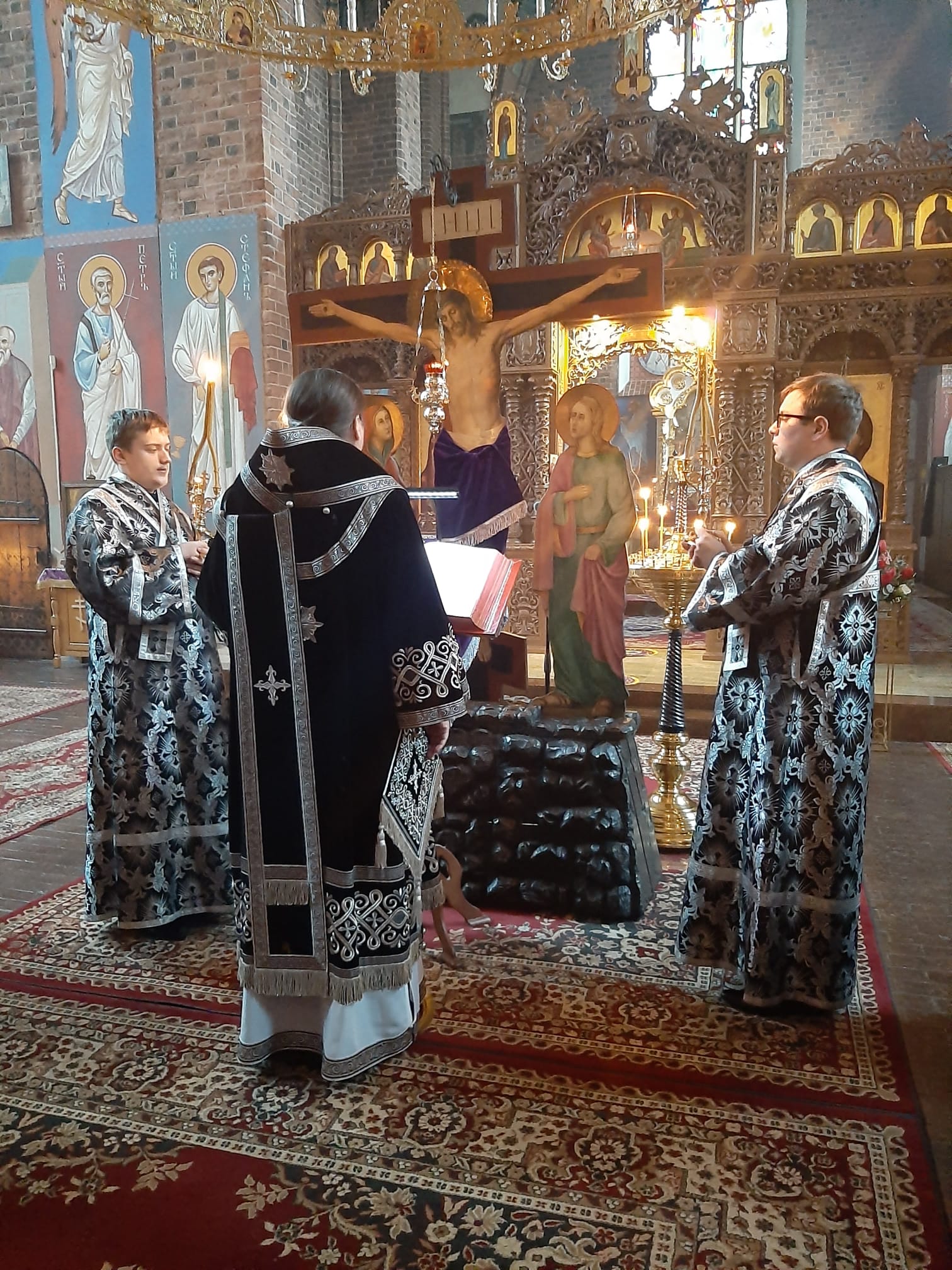 Podczas nabożeństwa, na środku świątyni przed Ukrzyżowaniem (Raspiatiem), Władyka odczytał fragment z Ewangelii wg św. Mateusza (rozdziały 26 i 27) opisujący ostatnie wydarzenia z ziemskiego życia Chrystusa.