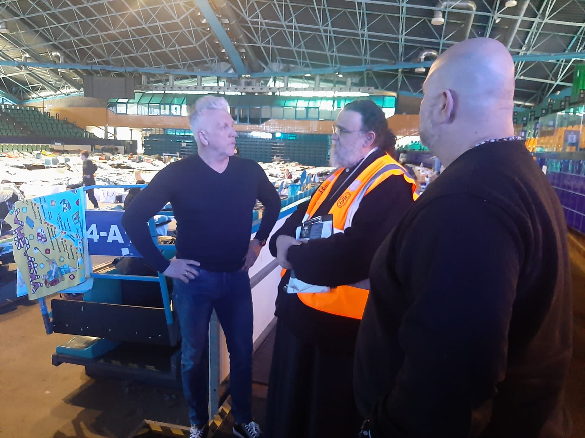 Metropolita Izajasz odwiedził również jeden z głównych punktów pobytu uchodźców na dolnym śląsku - wrocławską Halę Orbita gdzie w szczytowym momencie znajdowało schronienie kilkaset osób. Jego Ekscelencja przekazał od Centrum Pomocy Humanitarnej Metropolii Tamassos pomoc, która była odpowiedzią na zapotrzebowanie zgłoszone przez administrację punku pomocy uchodźcom w Hali Orbita. Była to niemal setka ręczników, klapków kąpielowych dla kobiet i dzieci, środki higieny osobistej, torby podróżne oraz wiele innych niezbędnych w sytuacji uchodźstwa rzeczy. Jego Ekscelencja spotkał się z wolontariuszami oraz przebywającymi w ośrodku uchodźcami.