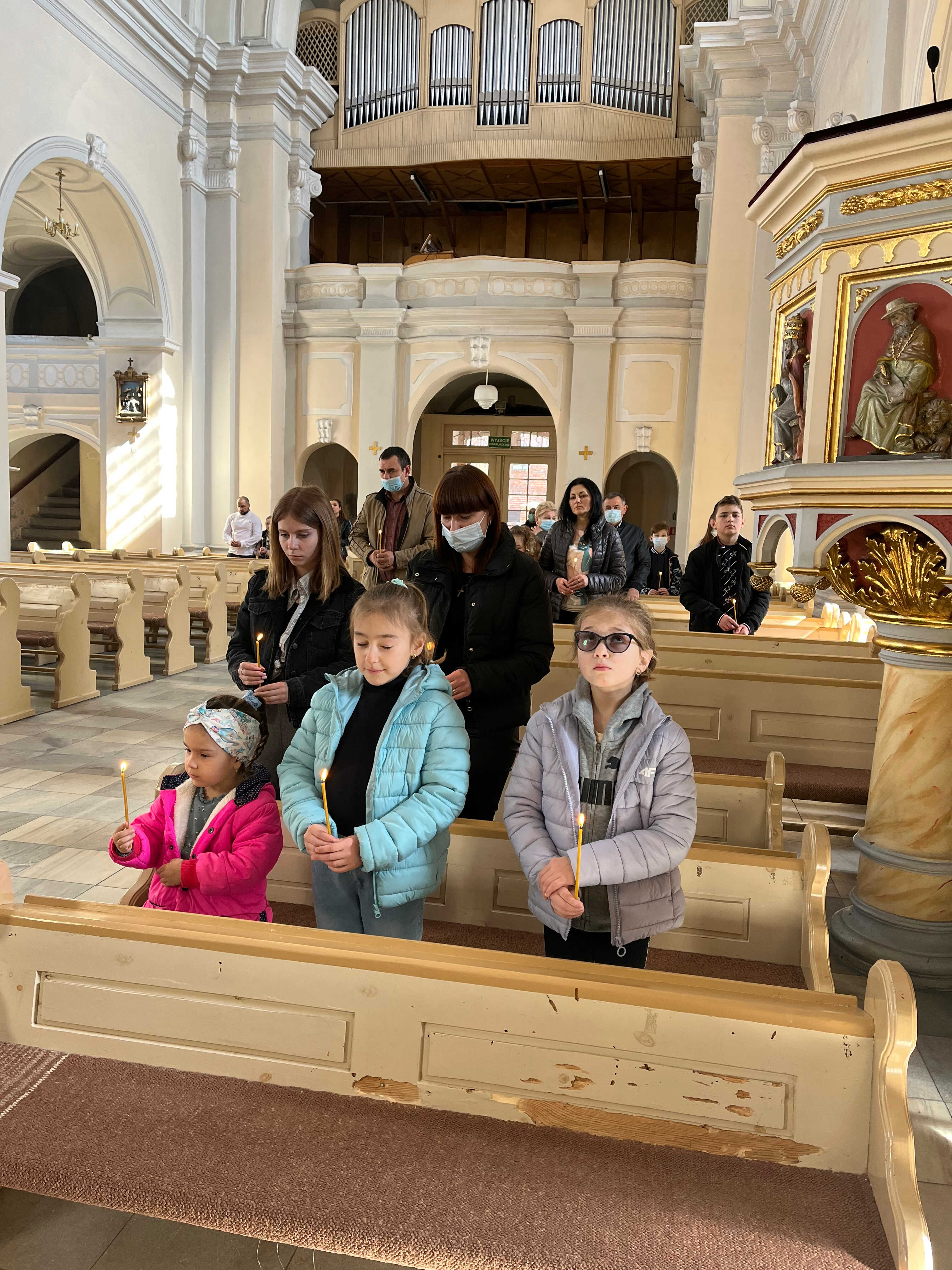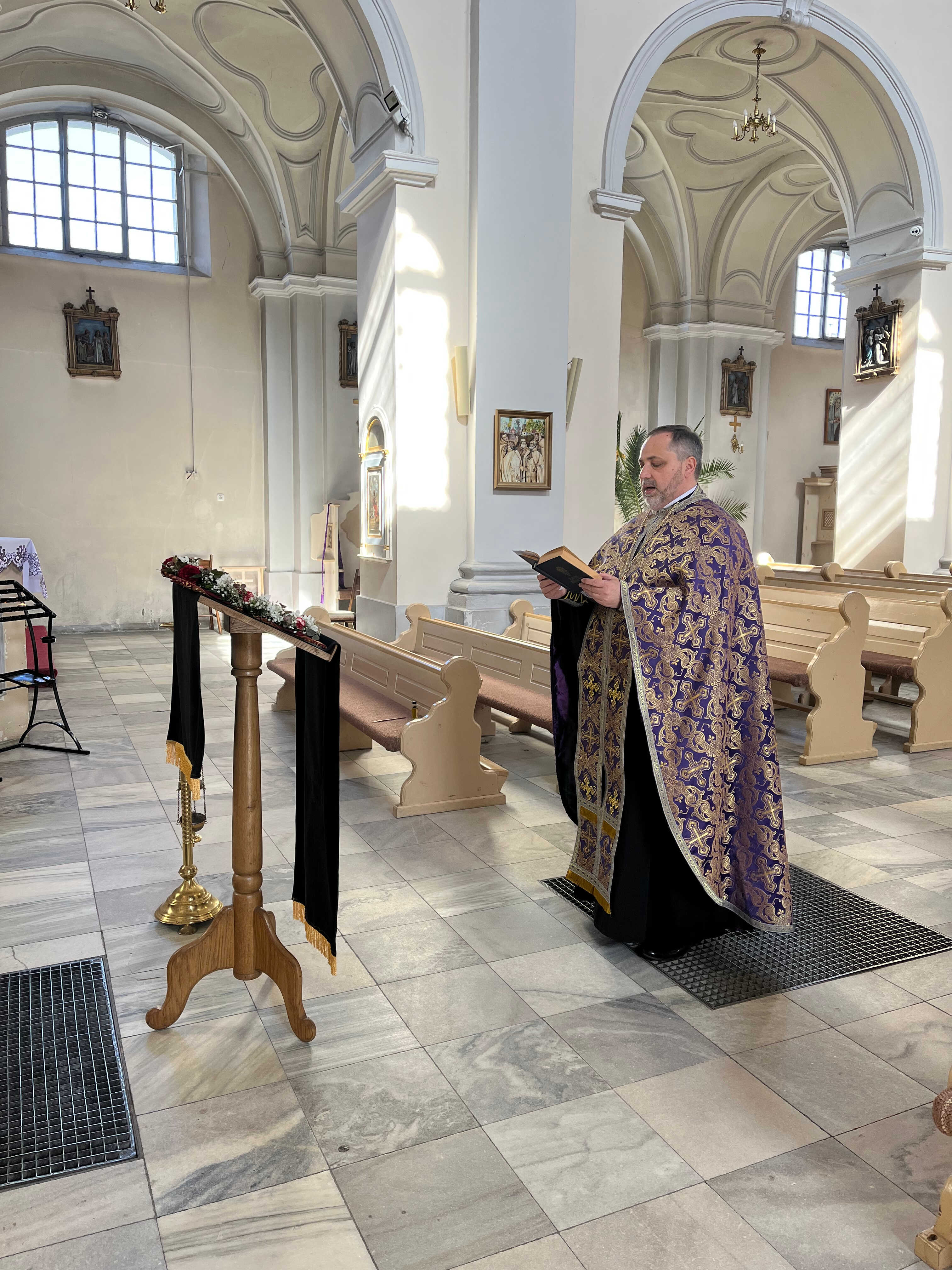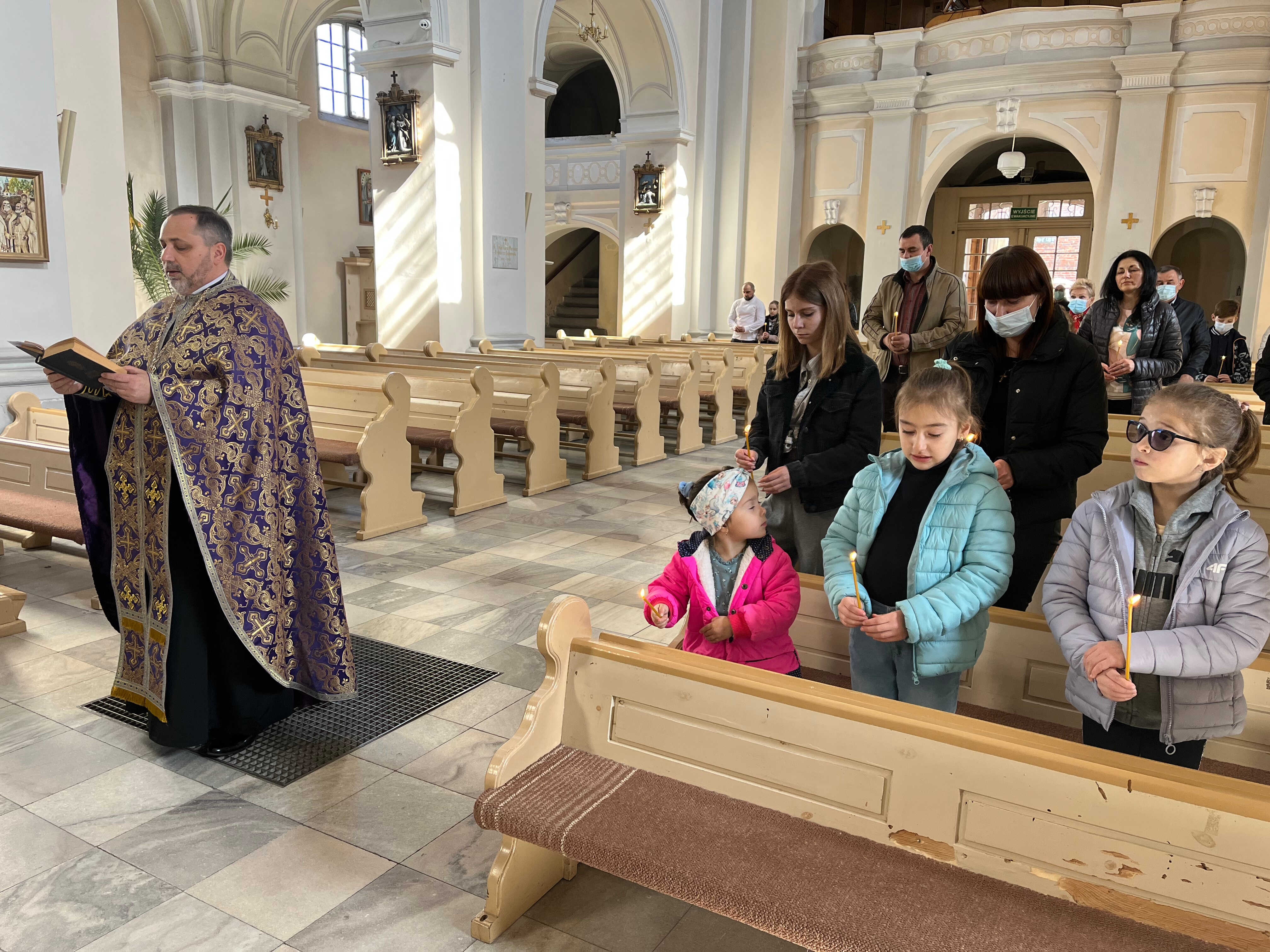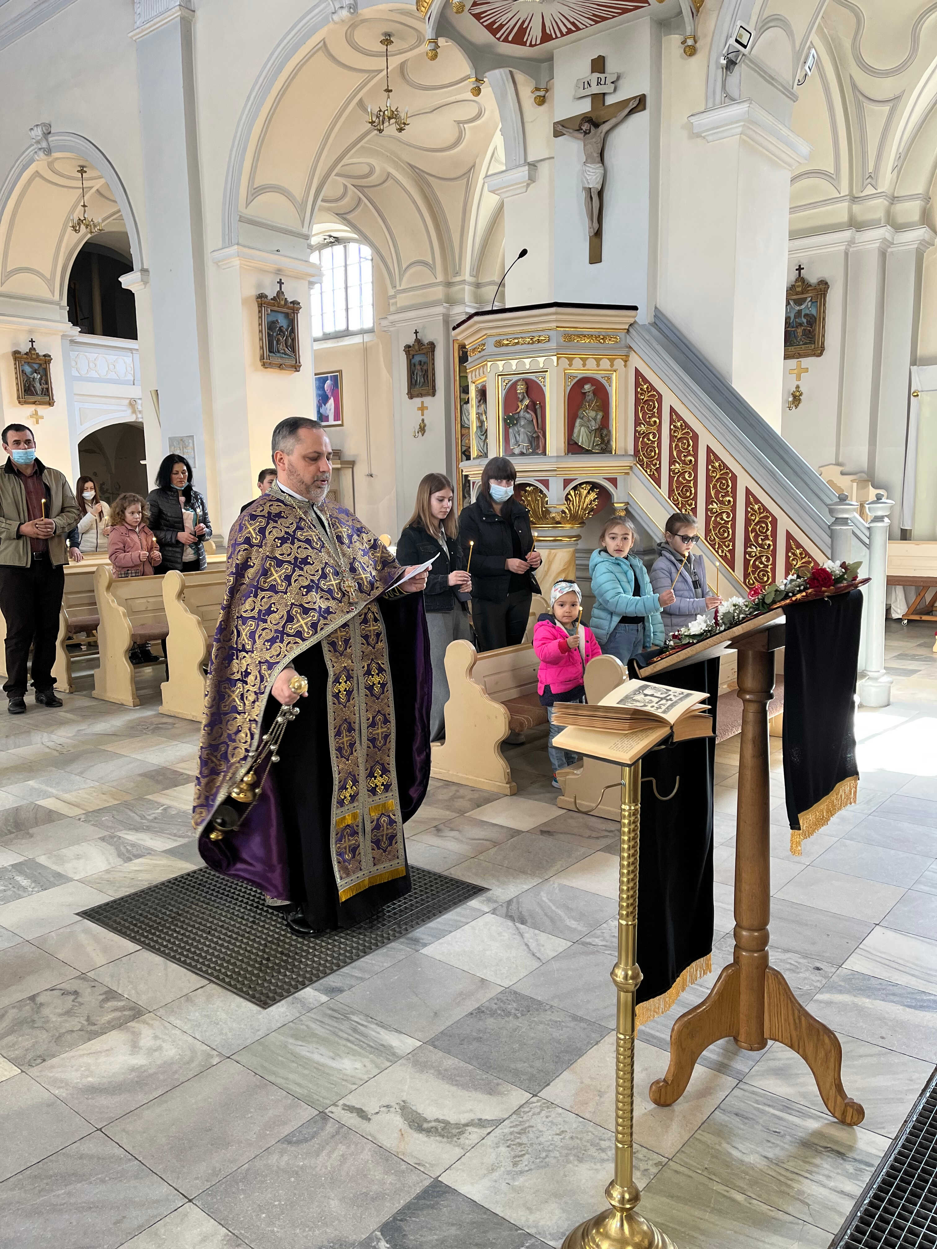 Z błogosławieństwa Jego Ekscelencji Najprzewielebniejszego Jerzego Arcybiskupa Wrocławskiego i Szczecińskiego 27 marca, proboszcz zielonogórskiej parafii ks. prot. Andrzej Dudra, w Kościele parafialnym pw. św. Wawrzyńca w Babimoście - Sanktuarium Matki Bożej Gospodyni Babimojskiej, sprawował dla prawosławnych uchodźców z Ukrainy wieczernię z akatystem ku czci Życiodajnego Krzyża Pańskiego.