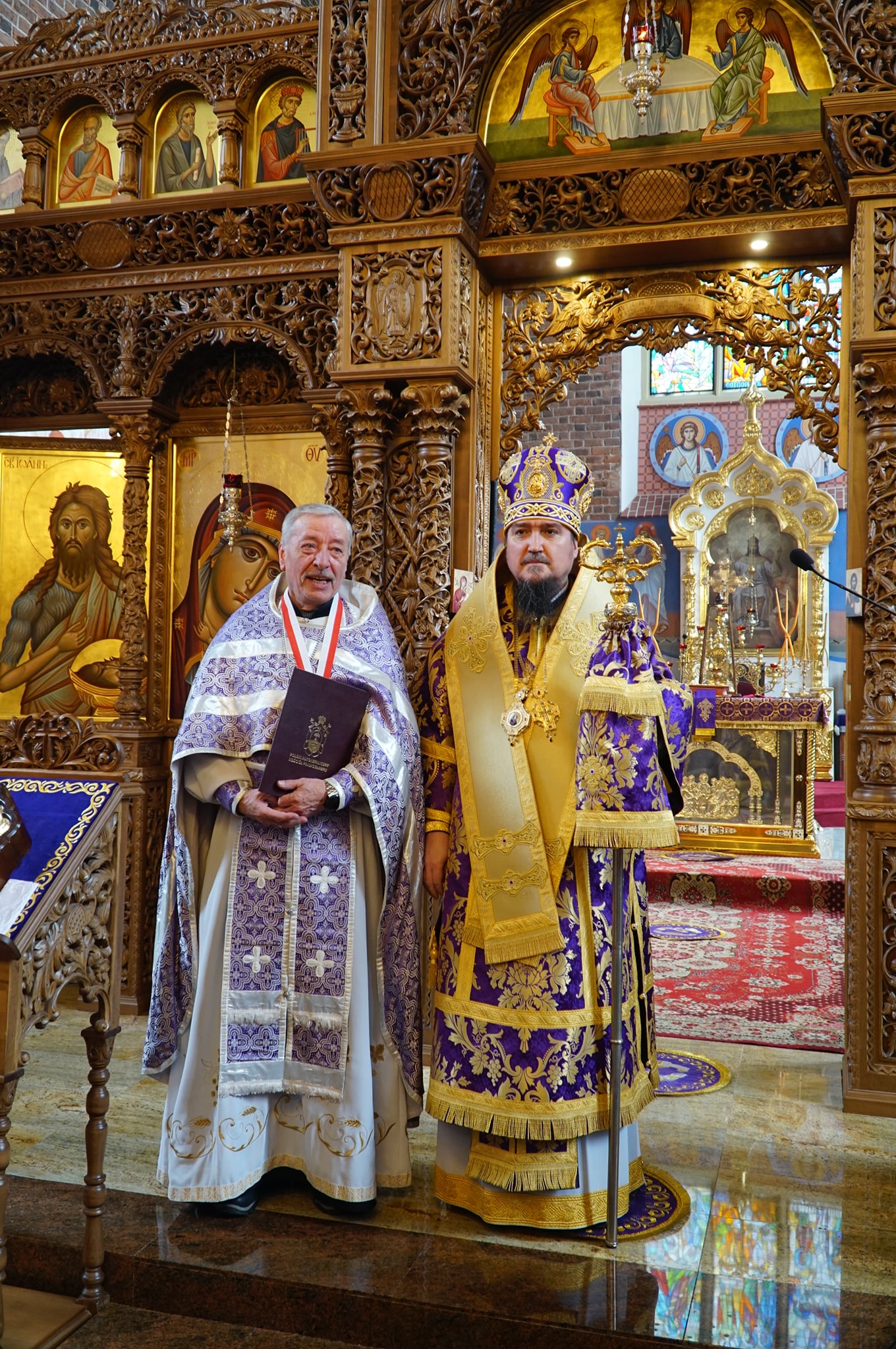 Kończąc Jego Ekscelencja nagrodził Orderem św. Marii Magdaleny II stopnia ks. mitrata Leona Karpiuka z okazji 40-lecia święceń kapłańskich.