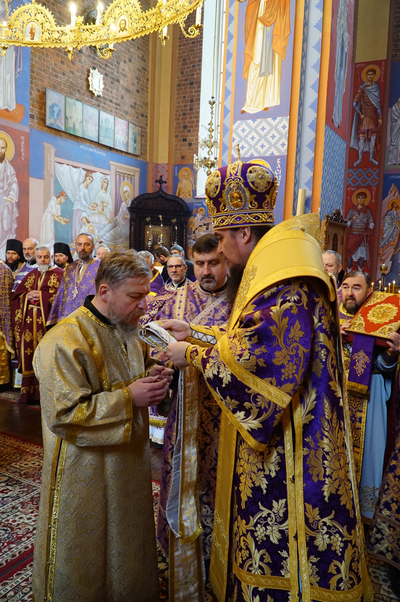 Podczas Boskiej Liturgii Władyka z okazji nadchodzącego święta Paschy nagrodził ks. Michała Kovala i ks. Bogdana Repełę prawem noszenia krzyża z ozdobami, ks. ihumena Jerzego Omelianiuka prawem noszenia palicy, ks. Marcina Prokopiuka i ks. Mariuszka Kiślaka podniósł do godności protoiereja, nagrodził prawem noszenia kamiławki ks. Adama Horbala oraz diakona Andrzeja Ważowskiego prawem noszenia podwójnego orarionu.