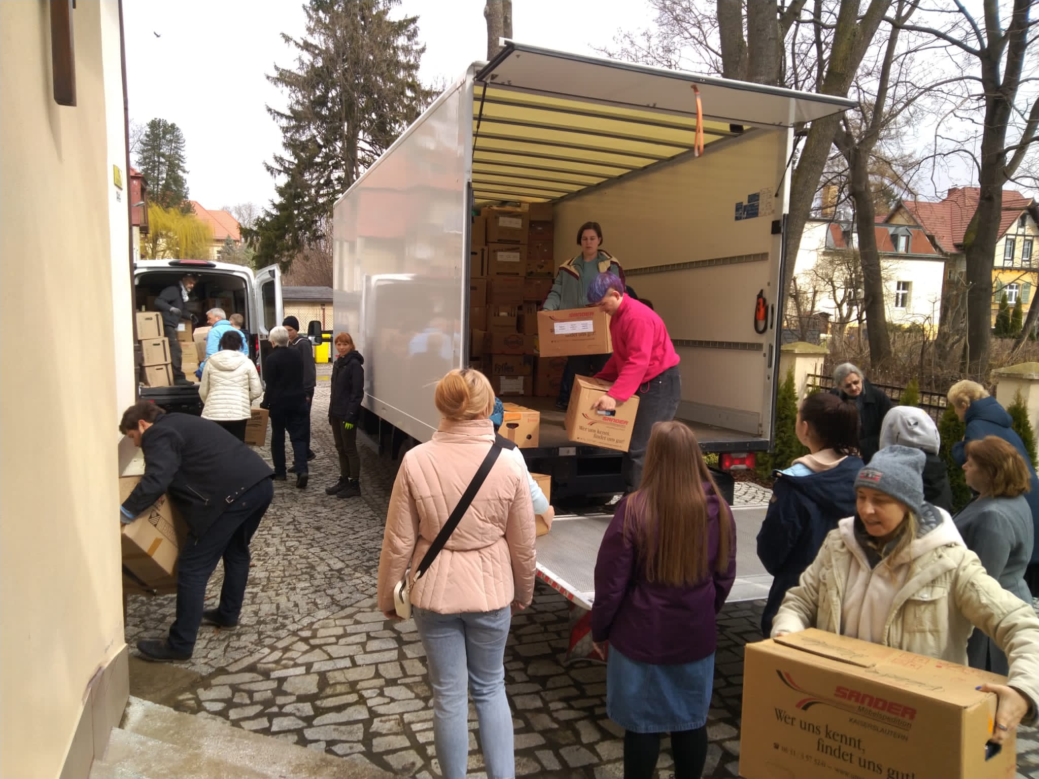 W sobotę 02.04 do Domu św. Stefana dotarł transport z pomocą humanitarną. Zbiórkę darów przeprowadziła młodzież zrzeszona w Evangelische Jugend Pfalz, na której czele stoi pastor Florian Geith. Goście mieli także okazję porozmawiać z uchodźcami i wysłuchać ich traumatycznych przeżyć związanych z wojną.