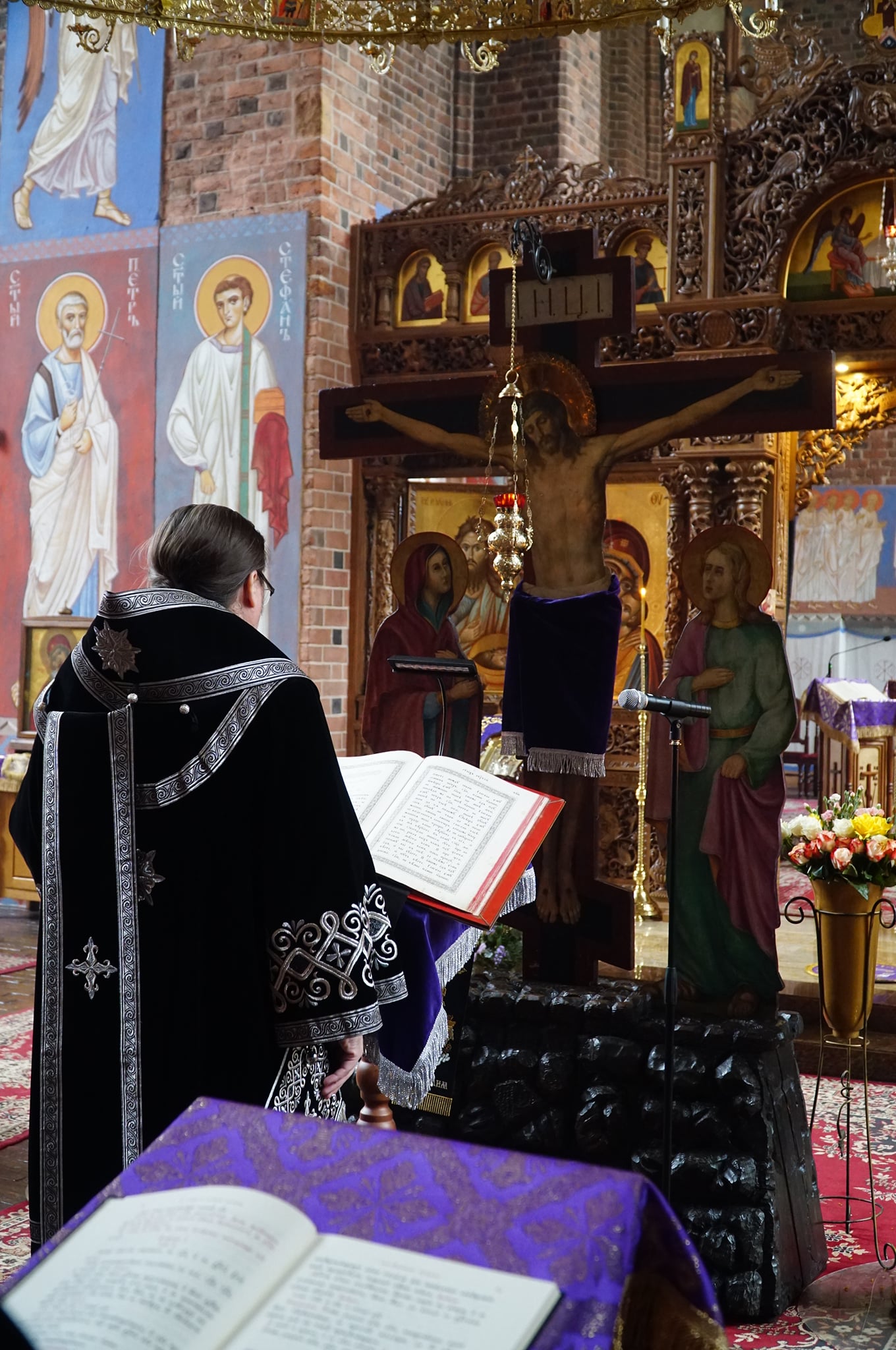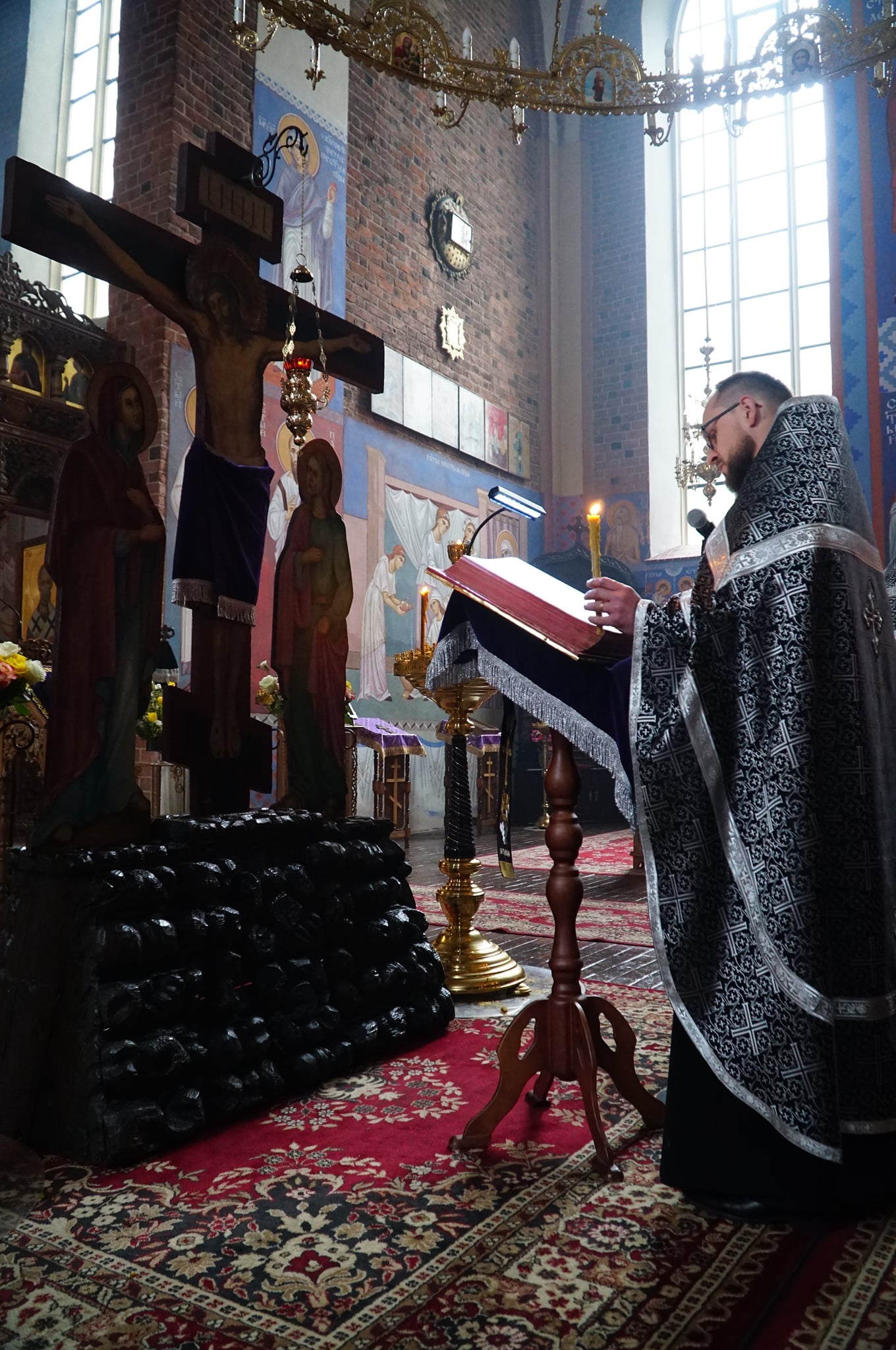 Wieczorem Władyka przewodniczył nabożeństwu jutrzni z czytaniem 12 fragmentów Ewangelii opowiadających o ostatnich godzinach życia Chrystusa. To wyjątkowe nabożeństwo rozpoczyna Triduum Paschalne Cerkwi Prawosławnej. Jutrznia Wielkiego Piątku, sprawowana zwyczajowo wieczorem poprzedzającego dnia, jest wprowadzeniem w przeżywanie dramatycznych wydarzeń Wielkiego Piątku. Czytane fragmenty Ewangelii mówią o ostatniej wieczerzy, pojmaniu Jezusa w ogrodzie Getsemani, procesie przed żydowskim Sanhedrynem i Piłatem oraz Śmierci na Krzyżu. Ostatnia z czytanych Ewangelii mówi o złożeniu ciała Mesjasza do grobu i zapieczętowaniu go przez strażników.