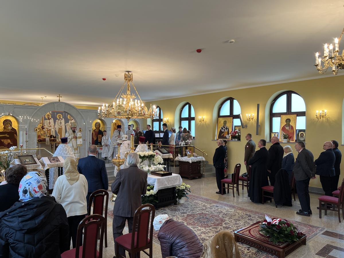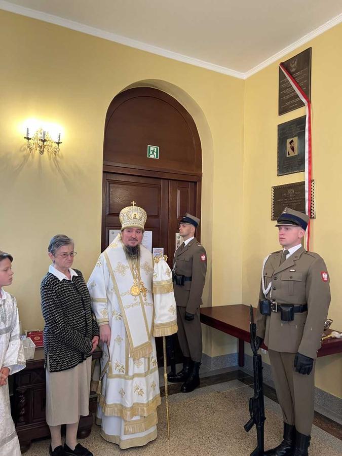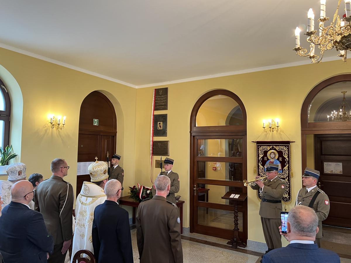 Tuż po nabożeństwie w tylnej części świątyni odbyła się uroczystość upamiętniająca męczeńską śmierć przedstawicieli prawosławnego duszpasterstwa wojskowego z Katynia, którą poprowadził ks. ppłk. Łukasz Godun – proboszcz katedralnej wojskowej parafii w Warszawie. Prawosławny Ordynariusz Wojskowy Arcybiskup Jerzy wraz z Panią Aleksandrą Adamczewską – wnuczką śp. ks. płk. Szymona Fedorońko, płk. Janem Glińskim Szefem Wojskowego Centrum Geograficznego oraz Prezesem Stowarzyszenia Pamięć Kapelanów Katyńskich Łukaszem Stefaniakiem odsłonili tablicę upamiętniającą śp. kapelanów wyznania prawosławnego z 1940r., której poświęcenia dokonał Arcybiskup Jerzy.