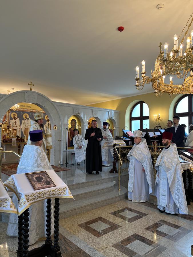 Następnie do zebranych zwrócił się Prawosławny Ordynariusz Wojskowy dziękując wszystkim za obecność, a w szczególności wnuczce śp. ks. płk. Szymona Fedorońko oraz wnuczce śp. ks. płk. Bazylego Martysza. W swoim słowie Władyka zwrócił uwagę na siłę prawdziwej wiary chrześcijańskiej, która wymaga od nas ogromnego wysiłku. Wierzyć w coś czego nie widzieliśmy, wierzyć w coś czego nie doświadczamy na co dzień, widząc umierających naszych braci i sióstr – szczególnie teraz na Ukrainie – i wierzyć w to, że oni powstaną, to niezwykle wielka rzecz. Jeżeli mamy w sobie taką wiarę i jesteśmy paschalnymi ludźmi, wówczas możemy przekazywać ją tym, którzy dziś doświadczają cierpienia. Władyka życzył wszystkim, abyśmy byli tymi wierzącymi, paschalnymi ludźmi!