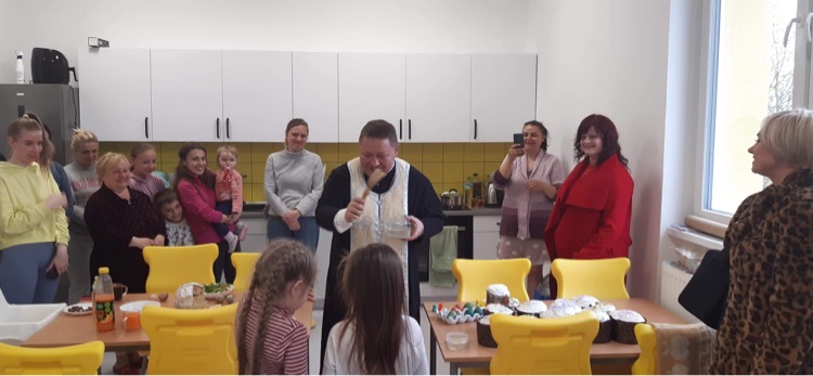 Poza tradycyjnym porządkiem nabożeństw na terenie Parafii Wszystkich Świętych w Wałbrzychu odbyło się szereg wielkanocnych spotkań w miejscu przebywania uchodźców z Ukrainy.