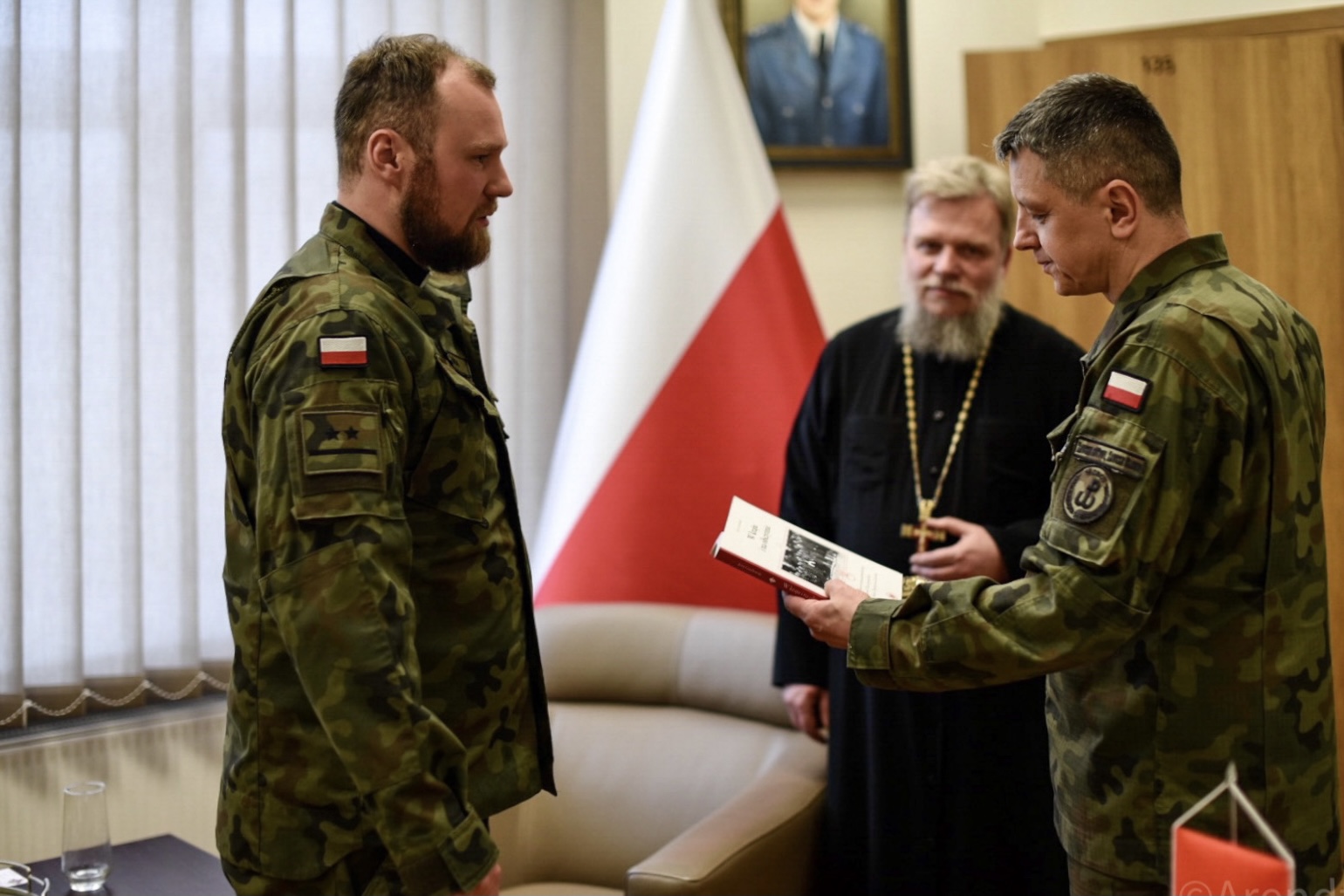 Pan płk. Artur Barański z właściwą sobie kulturą i żołnierską estymą, przyjął wielkanocne podarunki, a kapłańskie i oficerskie słowa gotowości pełnienia swej posługi złożone przez ks. Igora Haburę, na ręce Dowódcy, były jak najlepszą wizytówką dla Prawosławnego Ordynariatu Wojska Polskiego tego dnia i na przyszłość.