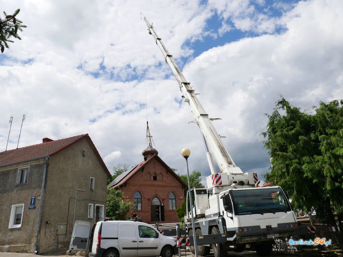 Blisko po roku od momentu poświęcenia Cerkwi Prawosławnej pw. Zaśnięcia Przenajświętszej Bogurodzicy w Barlinku, na dachu świątyni została osadzona kopuła z krzyżem.