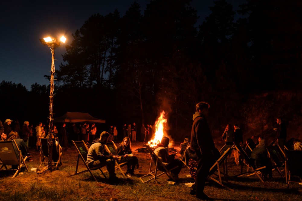 Piątkowy wieczór zakończył się kolacją przy ognisku na polanie nieopodal monasteru. W jej trakcie uczestnicy pielgrzymki mieli okazję wysłuchać koncertu tradycyjnych pieśni w wykonaniu członków Studia Folkloru Podlaskich Białorusinów ”Żemerwa”. Ogłoszono także wyniki paschalnego konkursu fotograficznego. Kilkugodzinna zabawa połączona ze wspólnym śpiewem i tańcami żywo zaangażowała i zintegrowała zebraną młodzież.