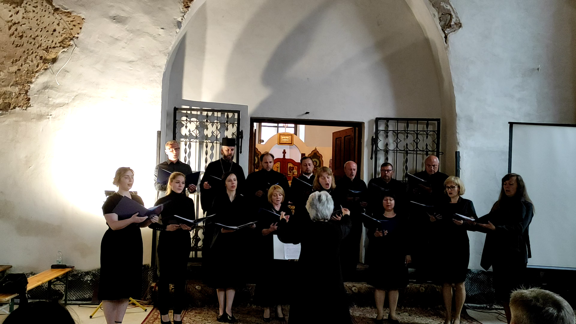 O godz.17 rozpoczął się koncert, w którym wystąpił Chór św.Jerzego z Ząbkowic Śląskich. Chór powstał w ubiegłym roku z błogosławieństwa abpa Jerzego i był to jego drugi występ w ząbkowickiej cerkwi. Chór stanowią zarówno parafianie ząbkowiccy, jak i mieszkańcy Wrocławia, Poznania, Świdnicy oraz osoby przybyłe do naszego kraju z Ukrainy. Chór jest wielowyznaniowy, śpiewają w nim zarówno prawosławni, jak i rzymscy katolicy. Dyrygentem chóru jest Pani Anna Andrianow.