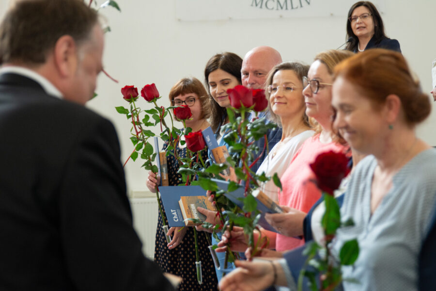 30 czerwca podczas uroczystego posiedzenia Senatu ChAT Jego Magnificencja prof. dr hab. Jerzy (Pańkowski) Rektor ChAT oraz dr hab. Bogusław Milerski – prorektor ds. finansów i rozwoju dokonali uroczystego wręczenia podziękowań osobom angażującym się w pracę na rzecz Uchodźców z Ukrainy.