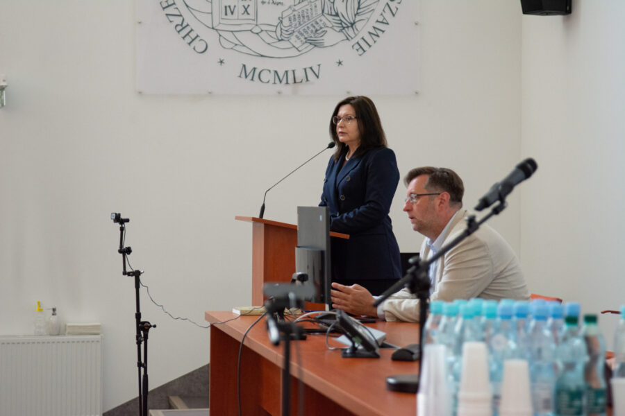 Mowę obrazującą działania pomocowe realizowane w Wydziale Nauk Społecznych ChAT w związku z wybuchem wojny wygłosiła prof. dr hab. Renata Nowakowsk-Siuta – Dziekan Wydziału Nauk Społecznych ChAT. Pani Dziekan podziękowała studentom, absolwentom oraz nauczycielom akademickim ChAT za inicjatywę i podjęty trud w organizacji i przeprowadzeniu lekcji języka polskiego, uruchomieniu zajęć integracyjnych z elementami nauki języka polskiego, zajęciami plastycznymi, zabawą i aktywnościami ruchowymi dla dzieci Uchodźców z Ukrainy, za zaangażowanie i gotowość do bezinteresownej pracy na rzecz dobra innego człowieka.