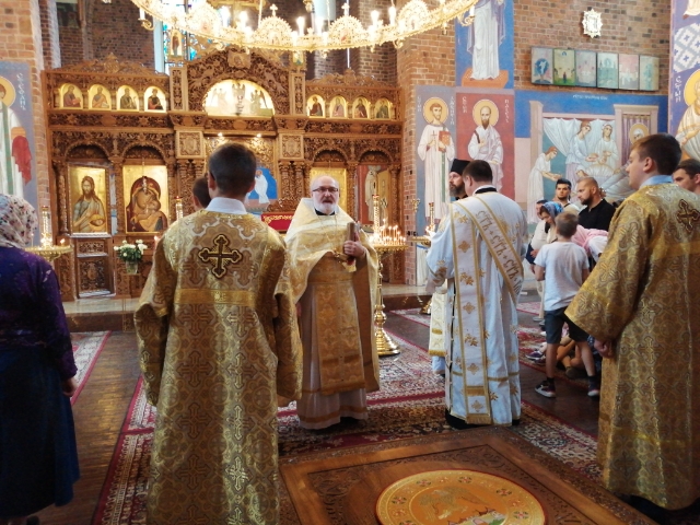 Następnie o. Aleksander złożył życzenia na Mnogaja i Błagaja Lieta Piotrom i Pawłom, zaś Stowarzyszeniu Prawosławnemu podziękował za pracę dla Cerkwi.