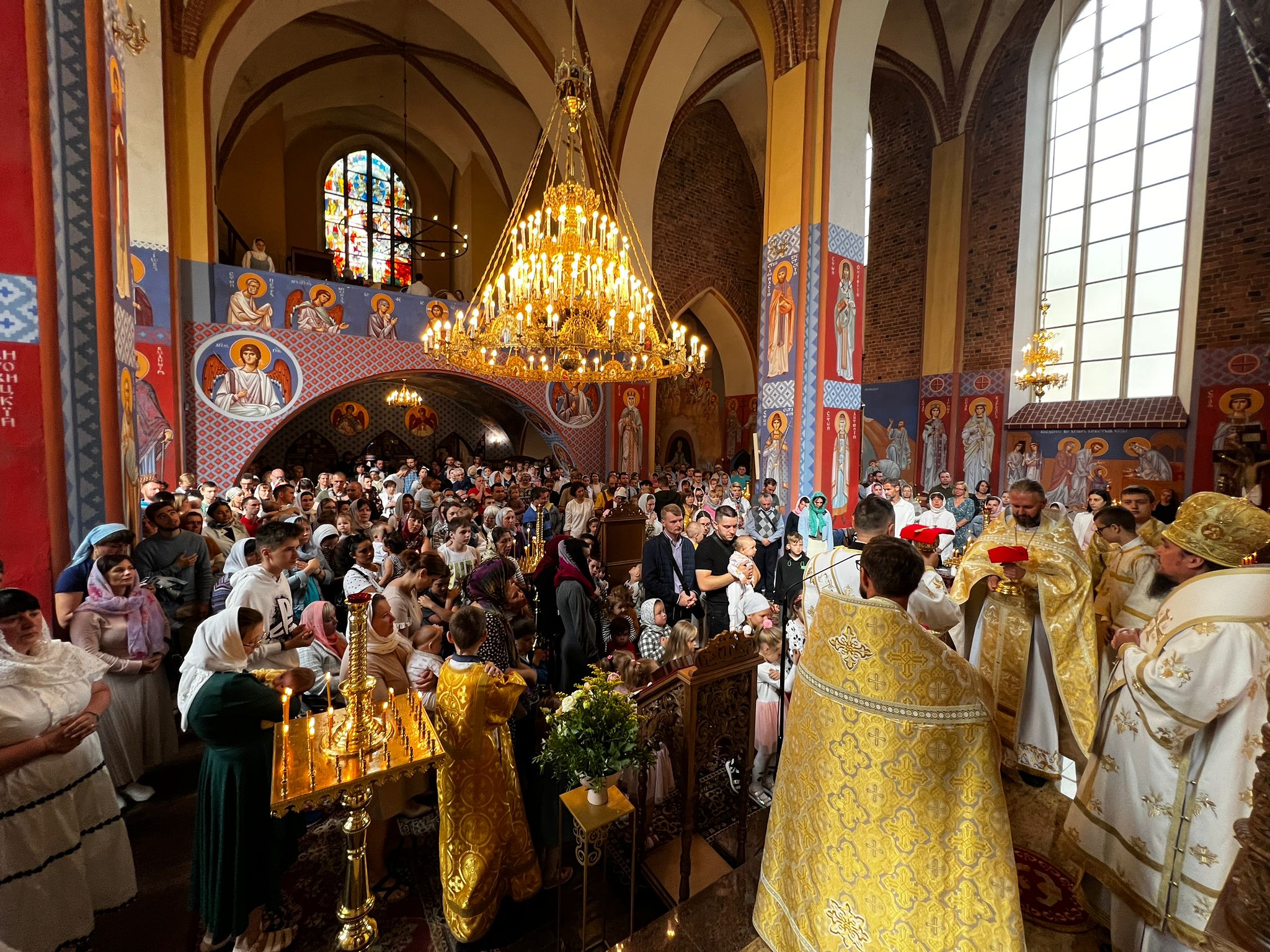 W trakcie nabożeństwa większość zgromadzonych w świątyni wiernych przystąpiła do misterium Ciała i Krwi Chrystusa.