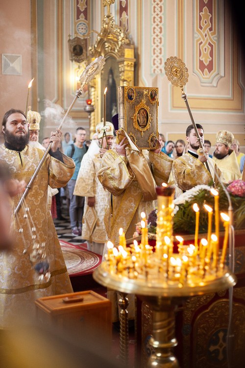 Z powodu zaawansowanych prac remontowych przy więźbie dachowej katedry, niemożliwym było przeprowadzenie procesji wokoło świątyni. Świąteczne uroczystości zakończyła doksologia i śpiew polichronionu. Następnie głos zabrał Jego Eminencja metropolita Sawa, który podkreślił podniosłość dnia pamięci patronki pierwszej i najważniejszej świątyni Cerkwi prawosławnej w Polsce. Dzisiejszy dzień ważny jest nie tylko w świątyni metropolitalnej, a przede wszystkim miejscowym parafianom. Takie dni, jak dzisiejszy zmuszają do refleksji nad miejscem każdego wiernego w Cerkwi i uczestnictwie w jej życiu – kontynuował Jego Eminencja. Wiele uwagi w ojcowskim pouczeniu poświęcono konieczności świadomego uczestnictwa w św. Eucharystii, jako wyznacznikowi poziomu życia cerkiewnego i duchowej odpowiedzialności.