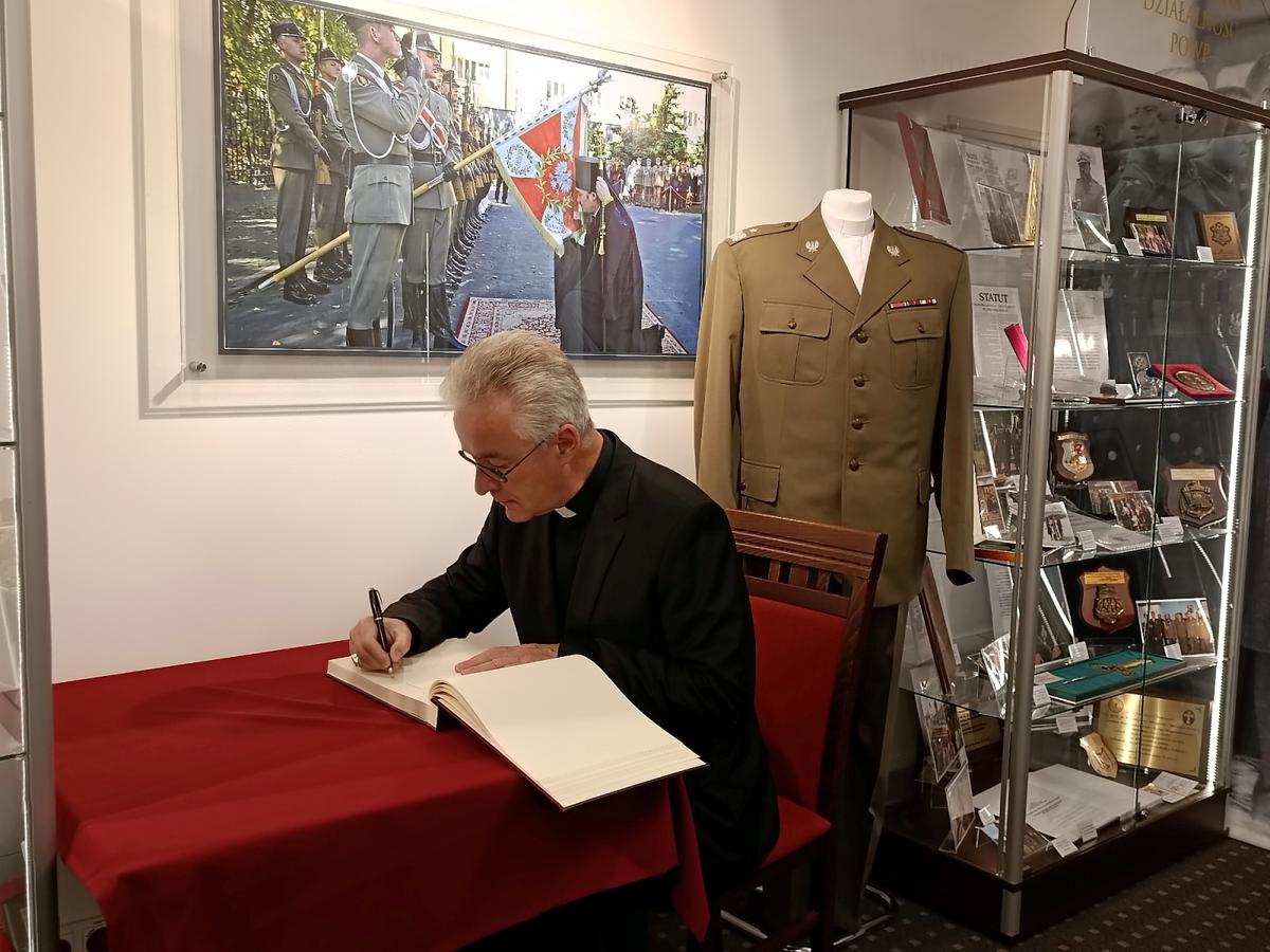 Kolejnym odwiedzonym miejscem była Sala Tradycji POWP, w której arcybiskup Jerzy opowiedział o historii ordynariatu oraz wykonana została pamiątkowa fotografia.
