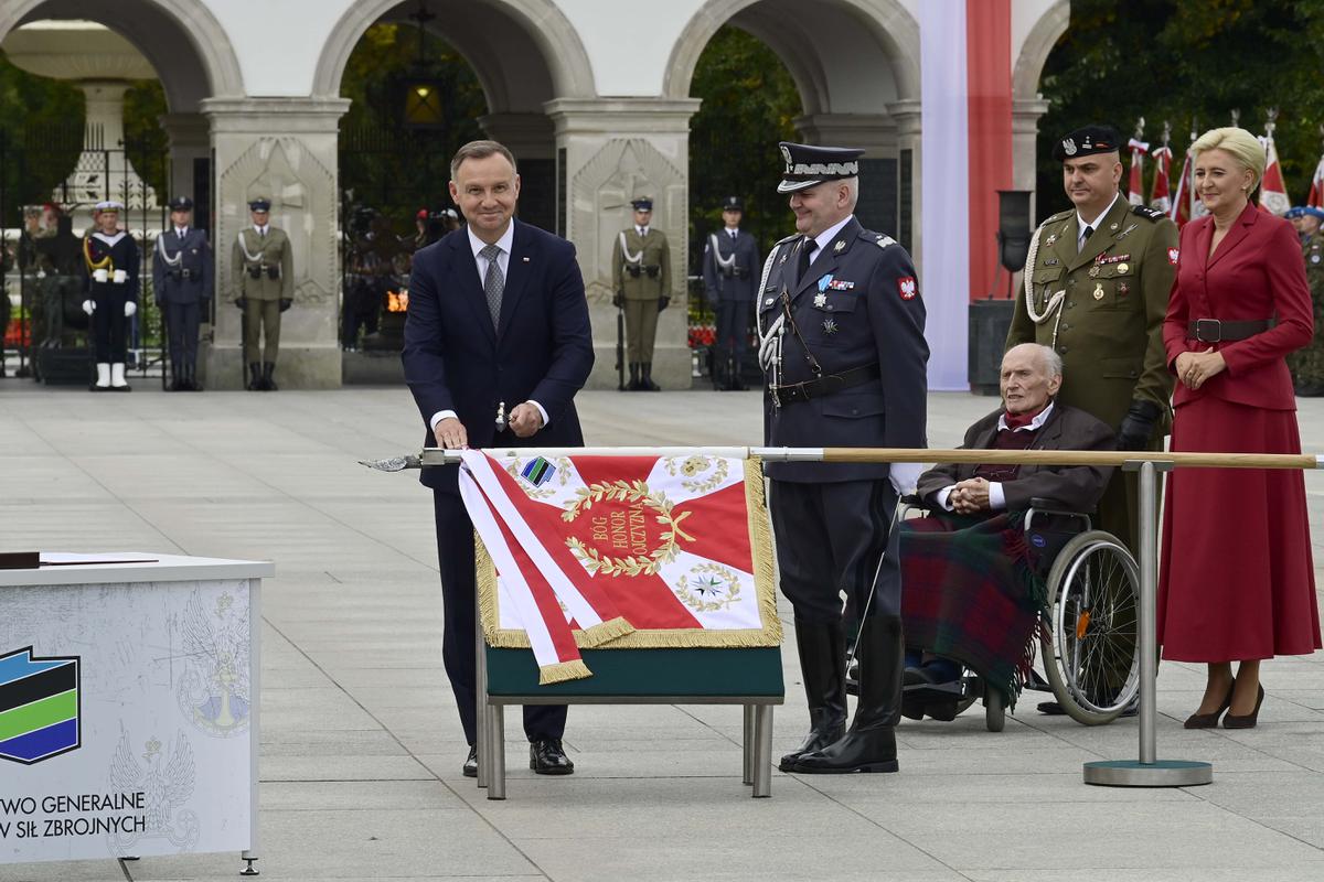 “Chciałbym podziękować Pani Prezydentowej Agacie Kornhauser-Dudzie oraz profesorowi Andrzejowi Maczkowi synowi generała Stanisława Maczka, którzy zgodzili się podjąć rolę rodziców chrzestnych naszego sztandaru. Szanowni Państwo to dla nas wyjątkowy zaszczyt i honor.” - dodał generał Mika.