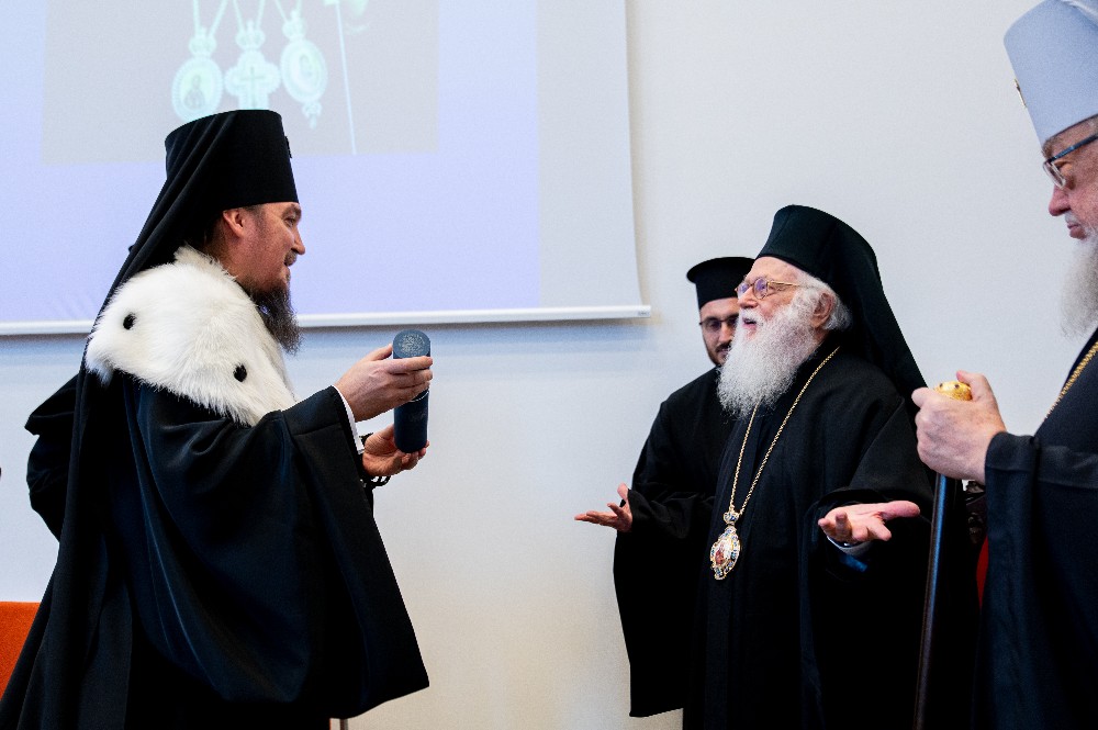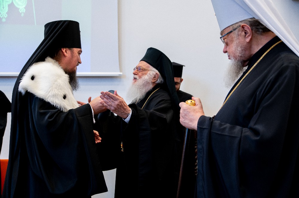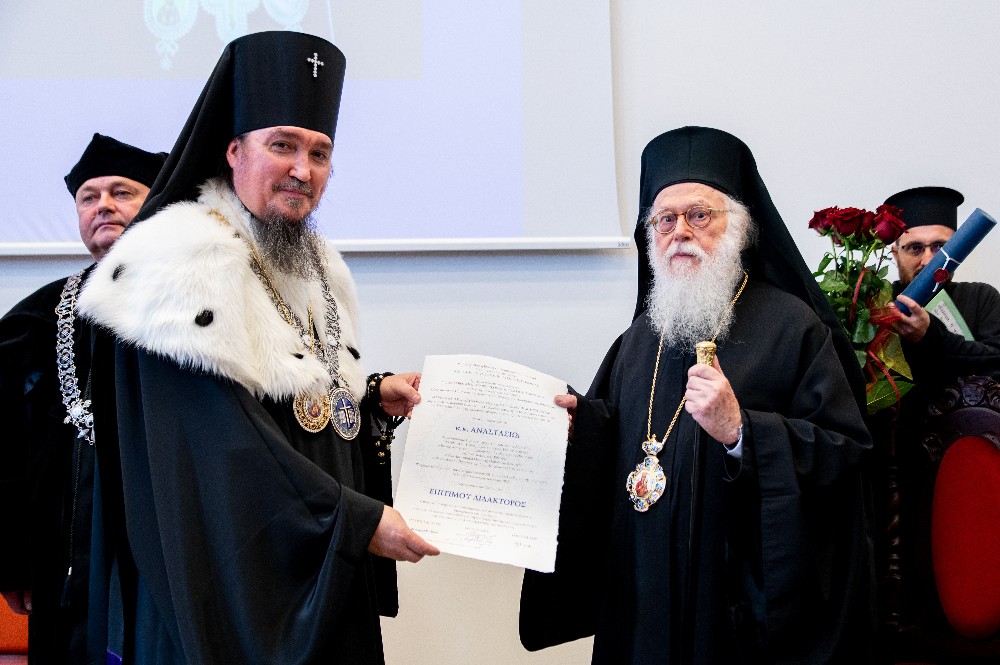 Dyplom doktorski, zapisany w języku starogreckim odczytał i wręczył dostojnemu hierarsze, Jego Magnificencja rektor arcybiskup Jerzy.