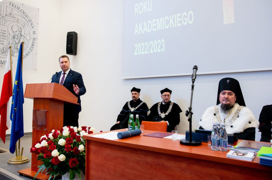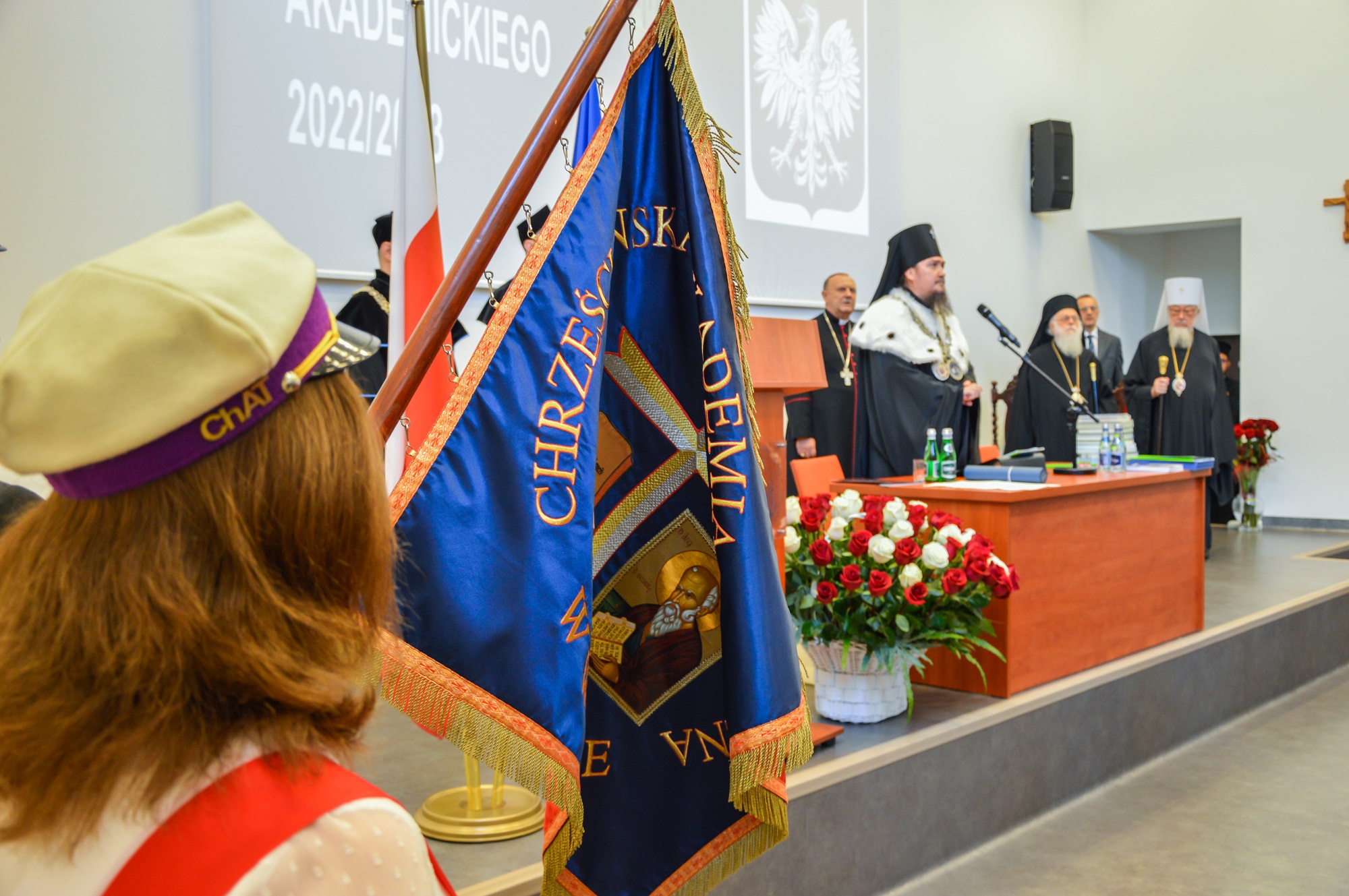 Zaśpiewany w podniosłym tonie o godz. 12.00 hymn Unii Europejskiej i Rzeczpospolitej Polskiej obwieścił początek inauguracji. Rektor uczelni, Jego Magnificencja arcybiskup Jerzy (Pańkowski) powitał wszystkich zebranych w głównej auli akademii. W pierwszej kolejności słowa pozdrowienia skierowane zostały pod adresem Ich Eminencji arcybiskupa Tirany, Durrёs i całej Albanii Anastazego, goszczącego w tych dniach w naszym kraju oraz metropolity warszawskiego i całej Polski Sawy. Arcybiskup Jerzy powitał członków episkopatu Polskiego Autokefalicznego Kościoła Prawosławnego, przedstawicieli Kościołów zrzeszonych w Polskiej Radzie Ekumenicznej oraz Kościoła rzymskokatolickiego, rektorów i przedstawicieli wyższych warszawskich i pozastołecznych uczelni. Miłe słowa powitania skierowano ponadto do wykładowców, pracowników administracji, doktorantów i studentów ChAT.